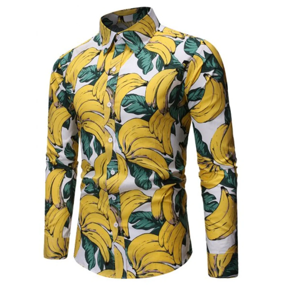 About Allover Banana Print Button hirt - Fansmadedirect
