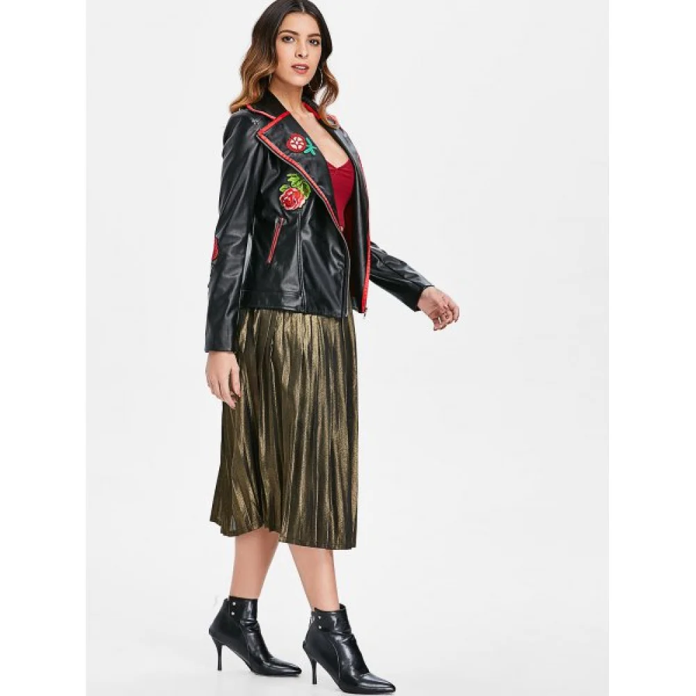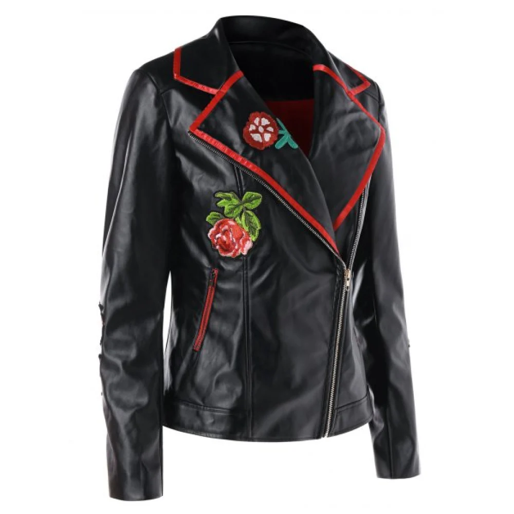 About Applique PU Biker Jacket - Black Fansmadedirect