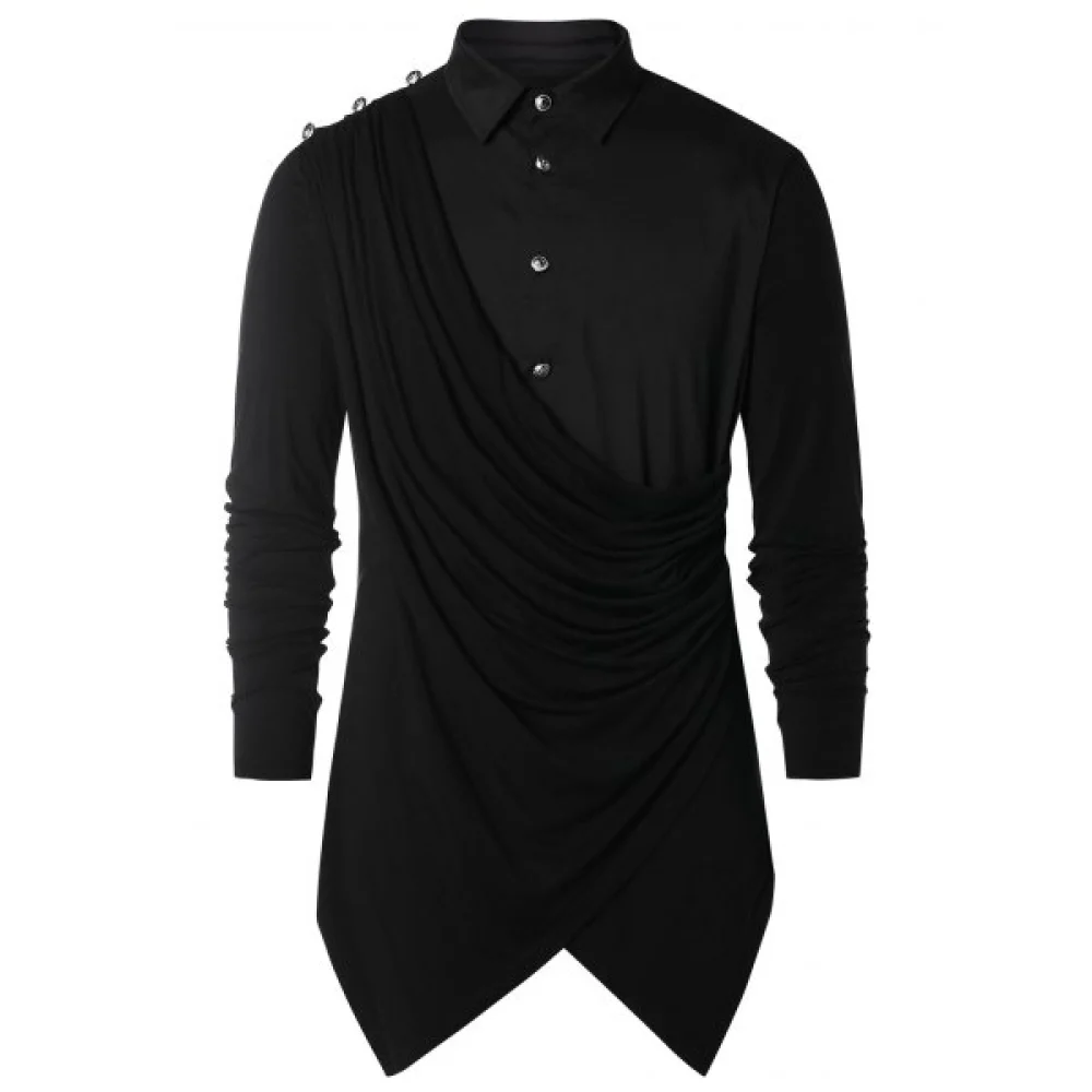About Asymmetric Button Up Solid Shirt - Black Fansmadedirect