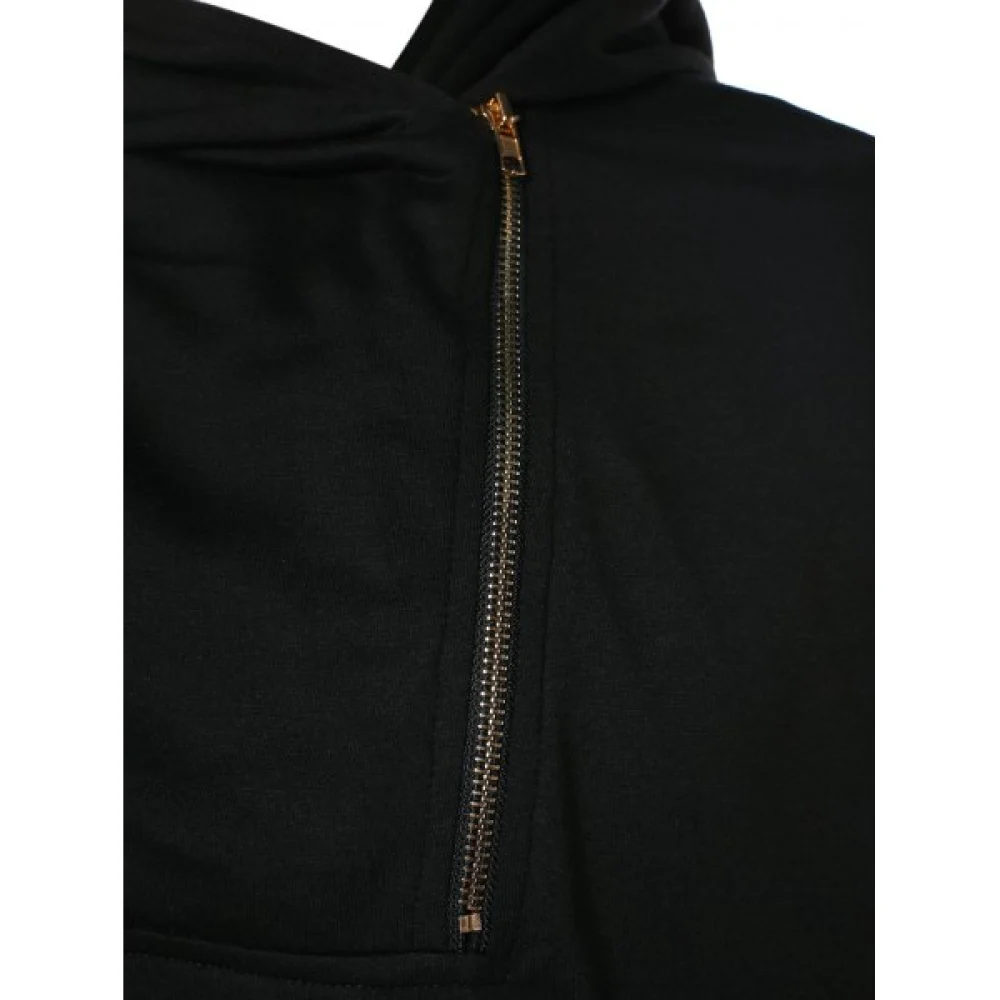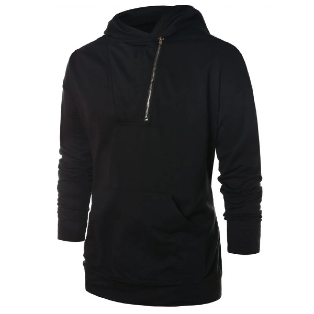 About Asymmetric Half Zip Solid Hoodie - Black Fansmadedirect