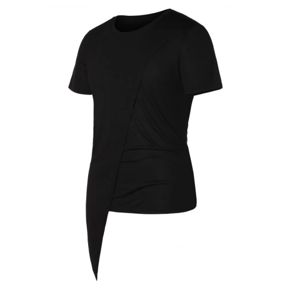Make a bold statement with this modern asymmetrical black T-shirt, designed for those who appreciate contemporary fashion with a unique edge. Crafted from soft, breathable fabric, this shirt offers all-day comfort while maintaining a sleek and structured look.