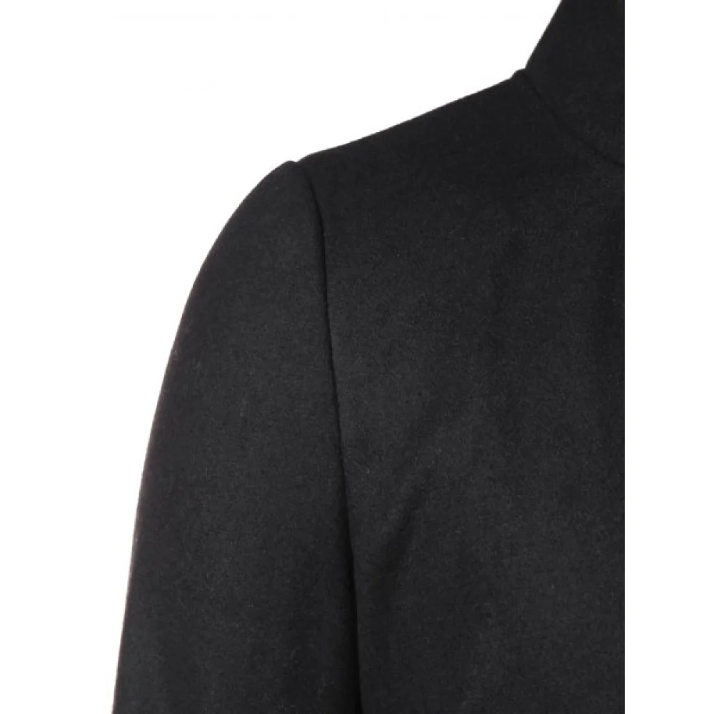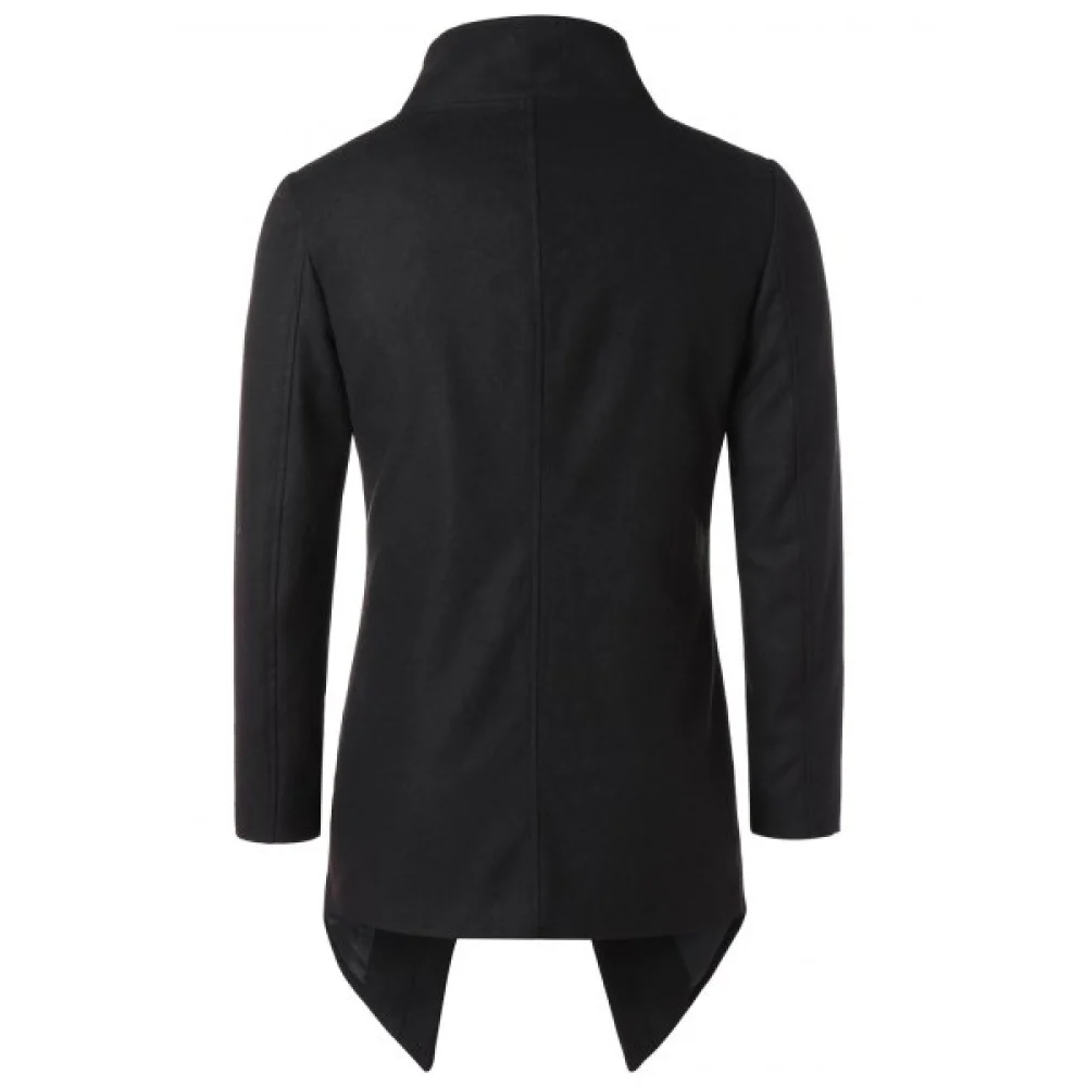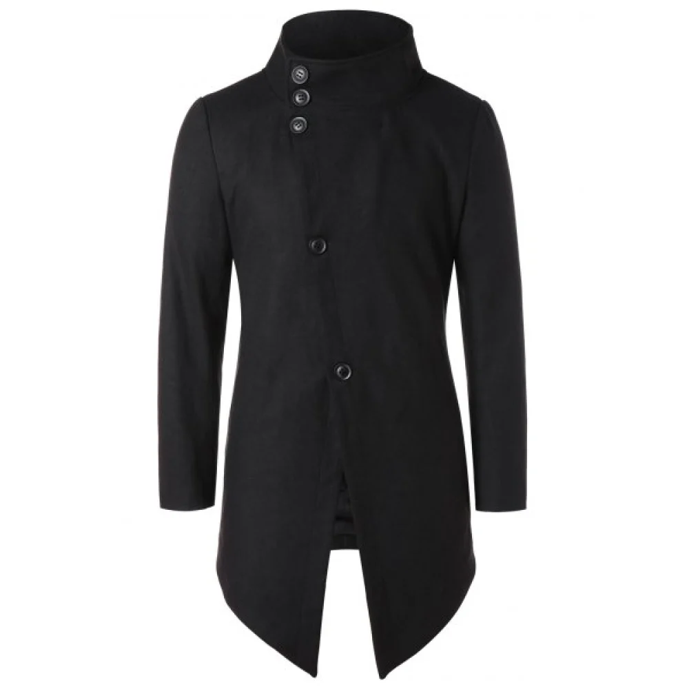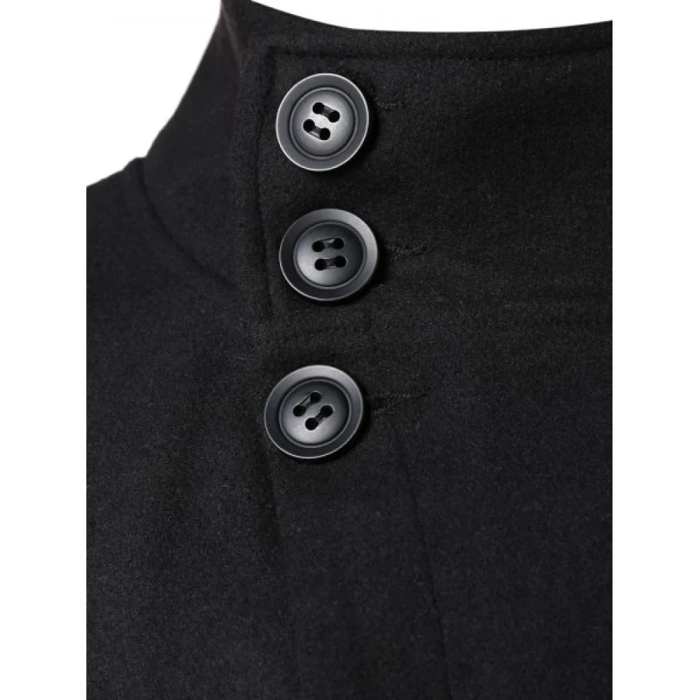 About Asymmetric Stand Collar Button Up Coat - Black Fansmadedirect