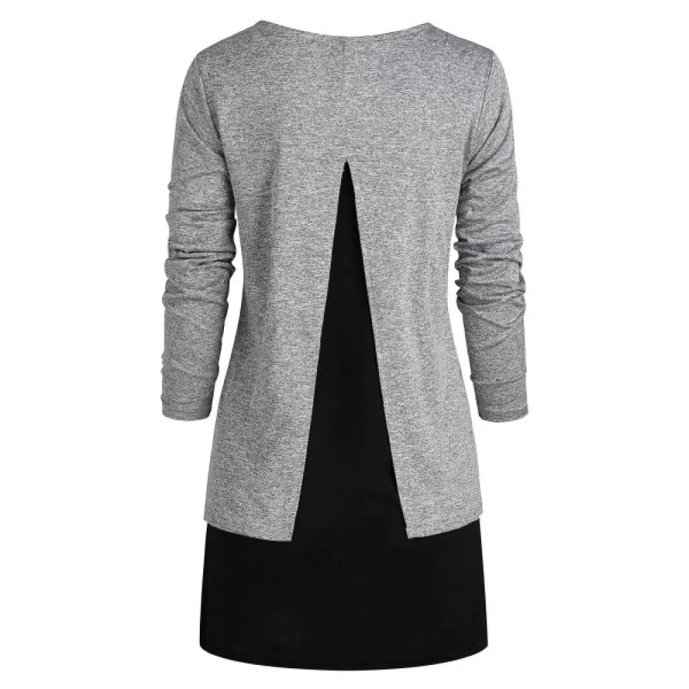 About Back Slit Heathered Round Neck Tee - Gray Fansmadedirect