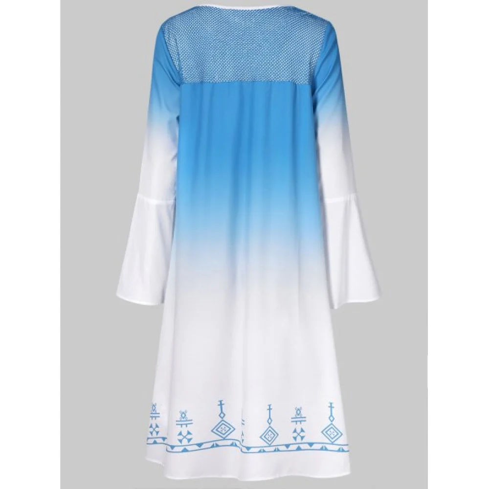 About Bell Sleeve Ombre Color Dress - Deep Sky Blue Fansmadedirect