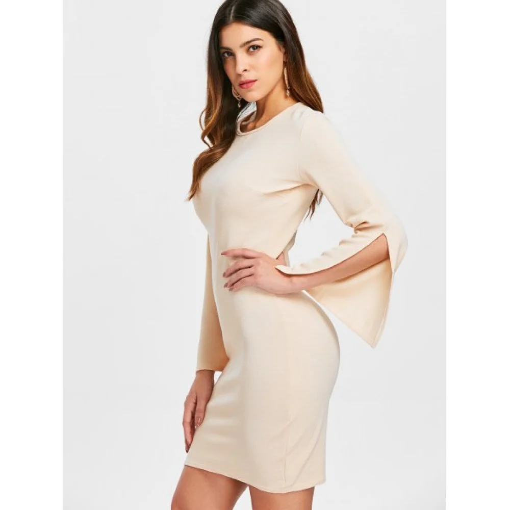 About Bell Slleve Casual Fitted Dress - Light Khaki Fansmadedirect