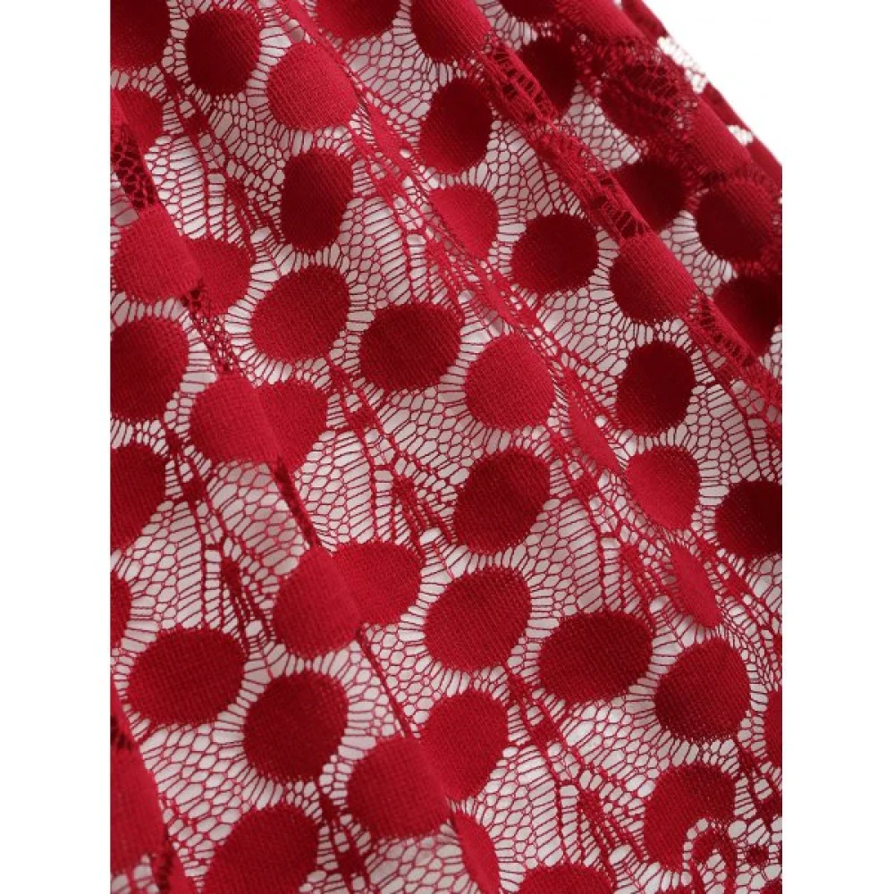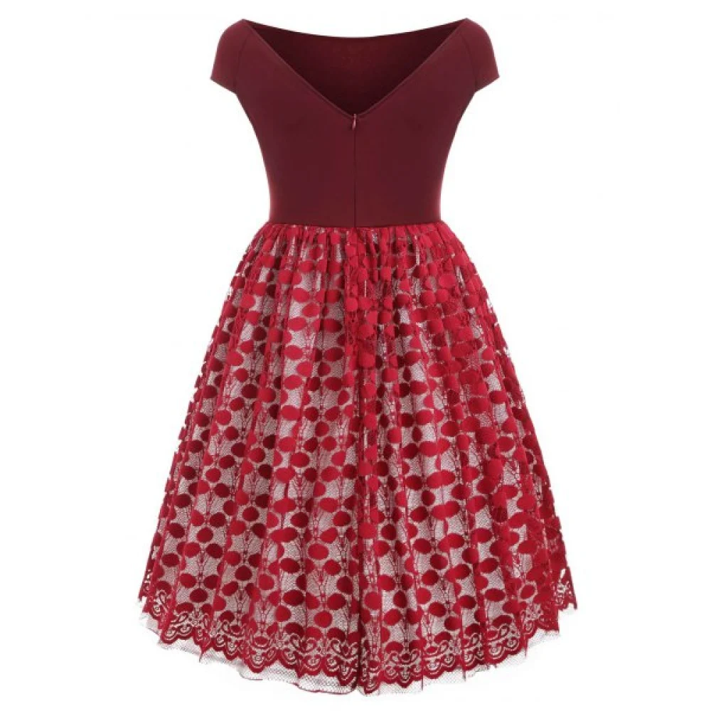 About Boat Neck Lace Panel Vintage Dress - Red Wine Fansmadedirect