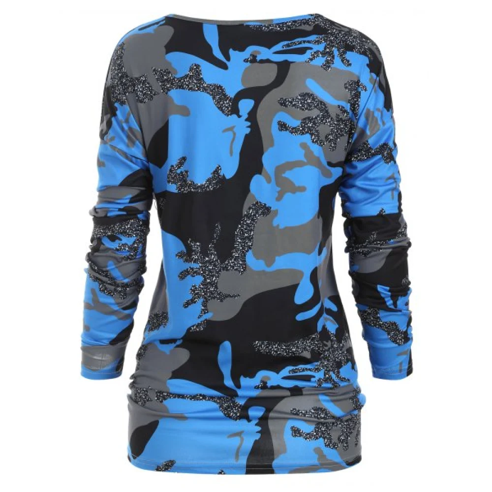 About Camo Drop Shoulder Loose Sweatshirt - Blue Fansmadedirect