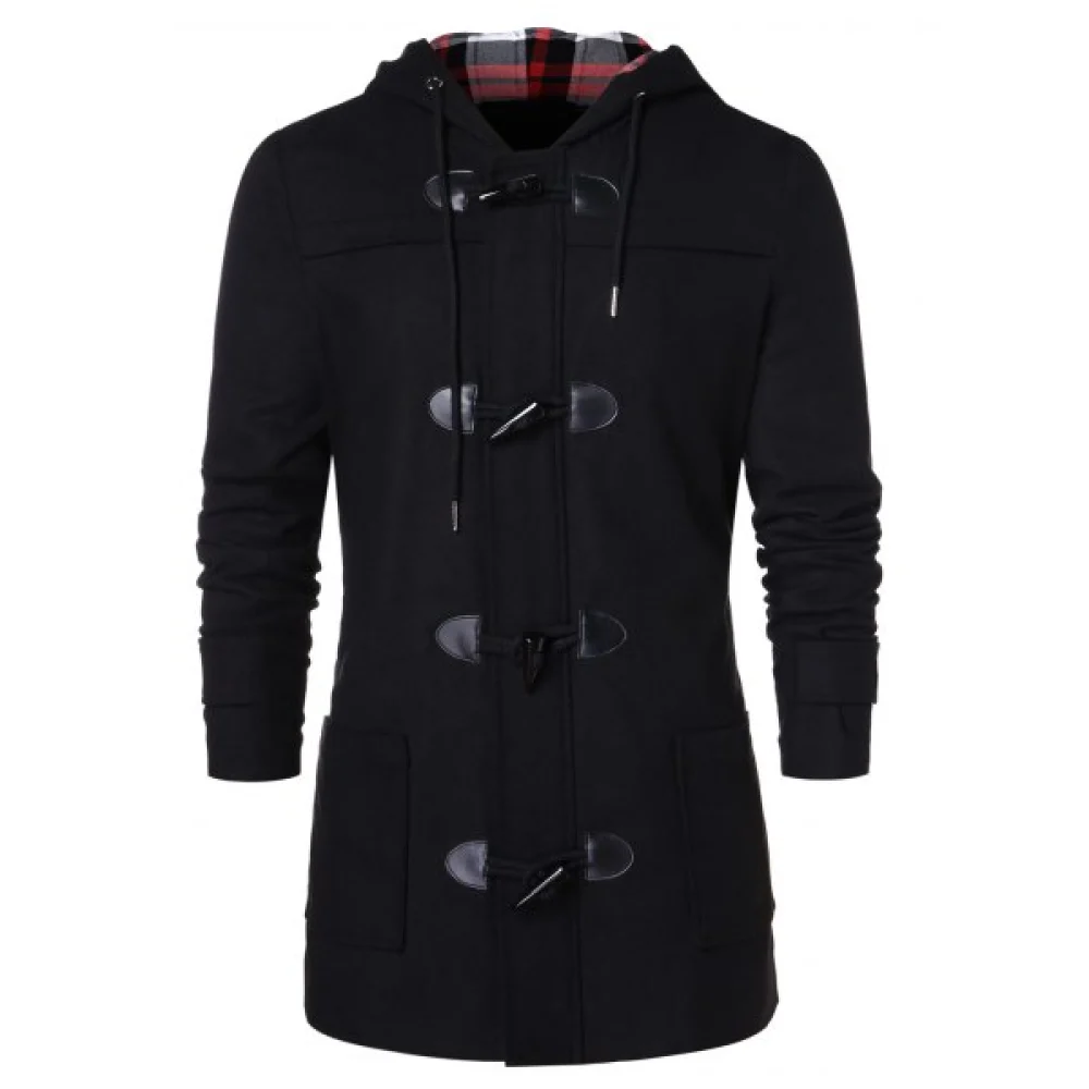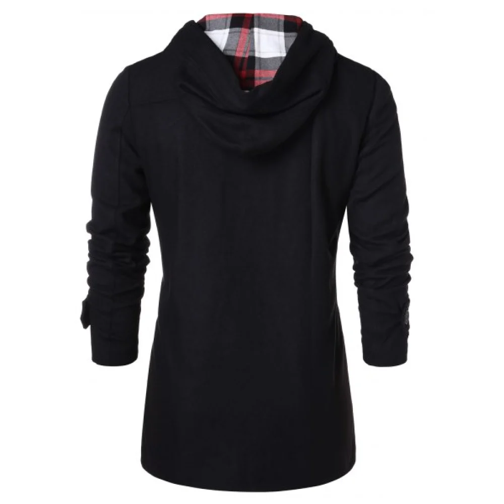 About Checked Print Panel Hooded Duffle Coat - Black Fansmadedirect