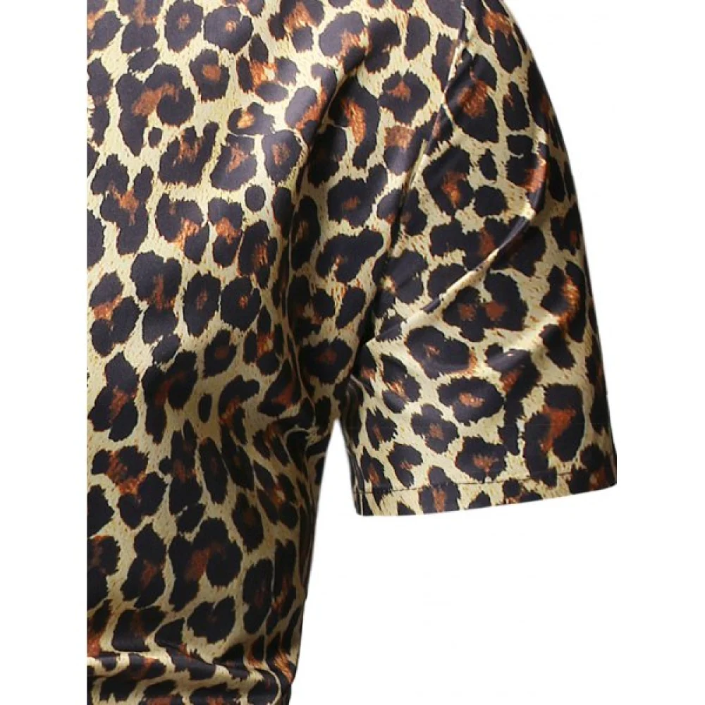 About Cheetah Print Casual Short Sleeves Shirt - Tan Fansmadedirect