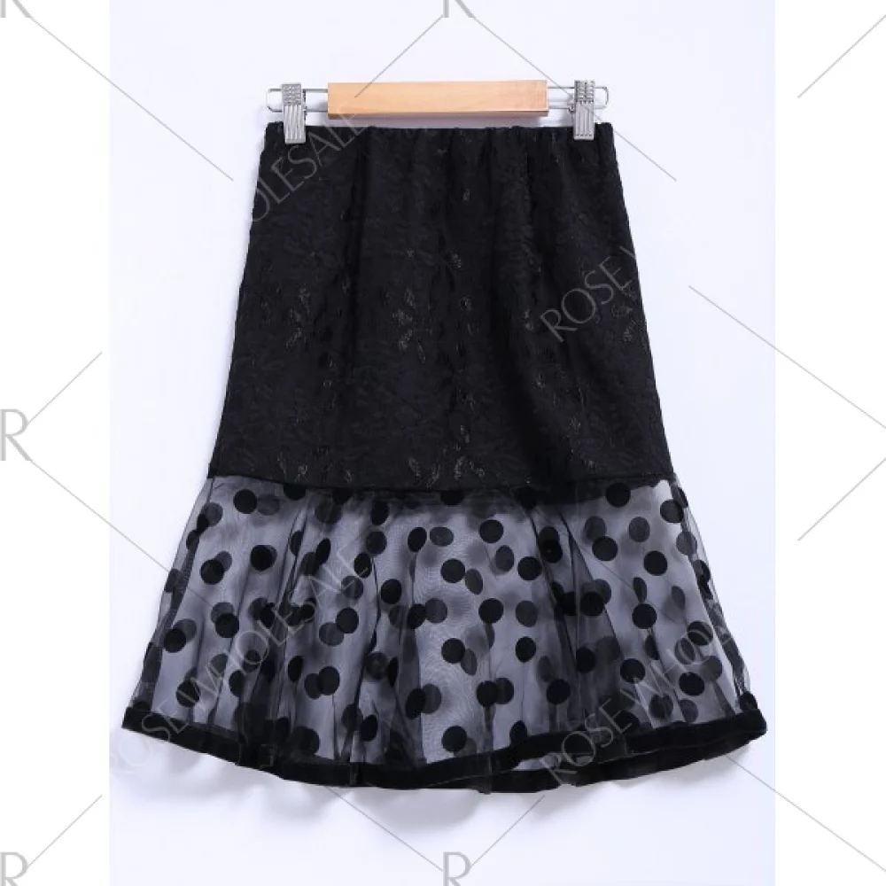About Chic Style Organza Splicing Polka Dot Print Ruffles Black Women's Skirt - Black Fansmadedirect
