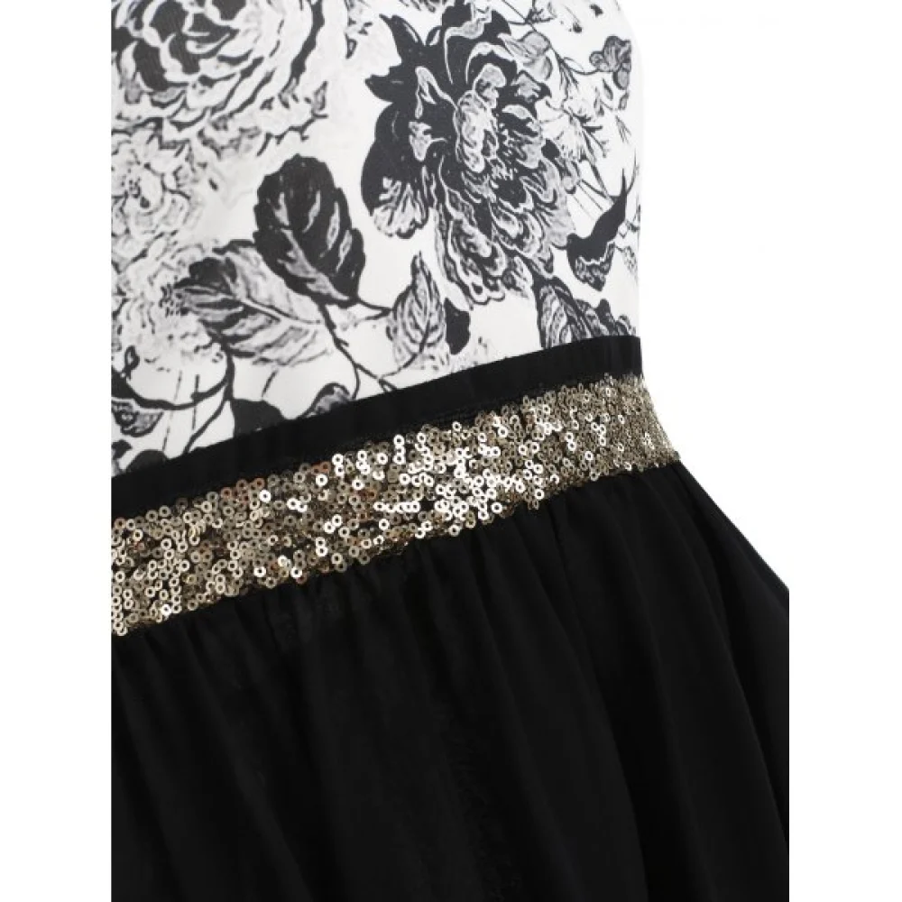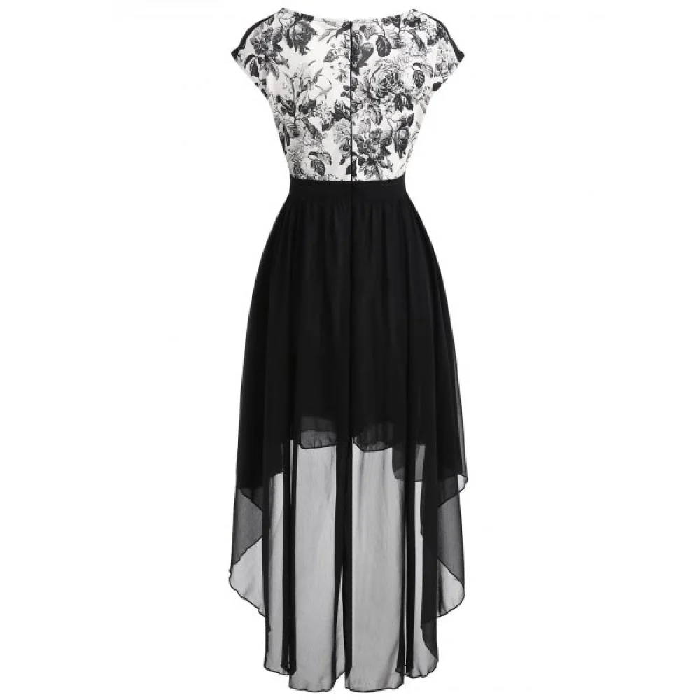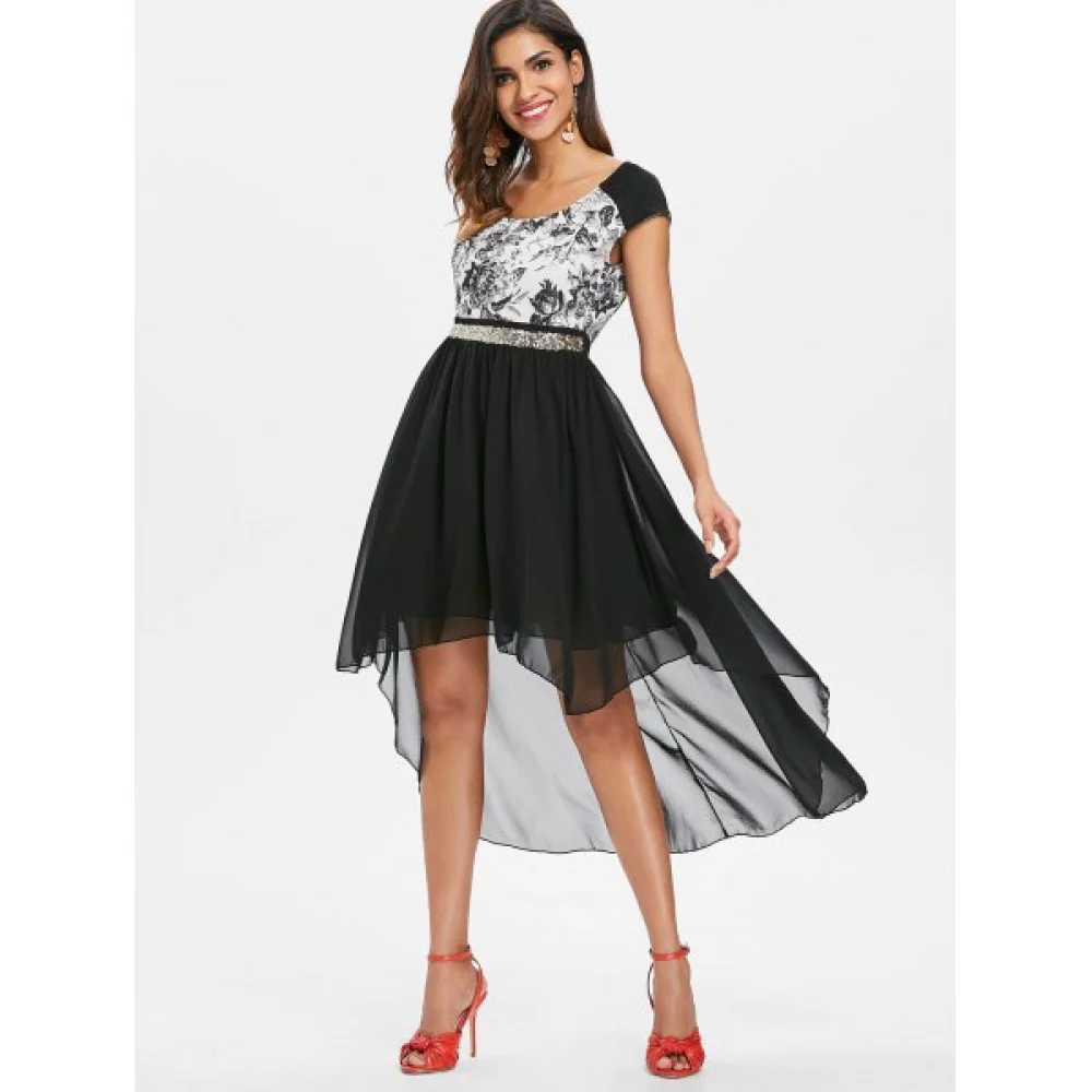 About Chiffon Panel equin Waist High Low Dress - Black Fansmadedirect