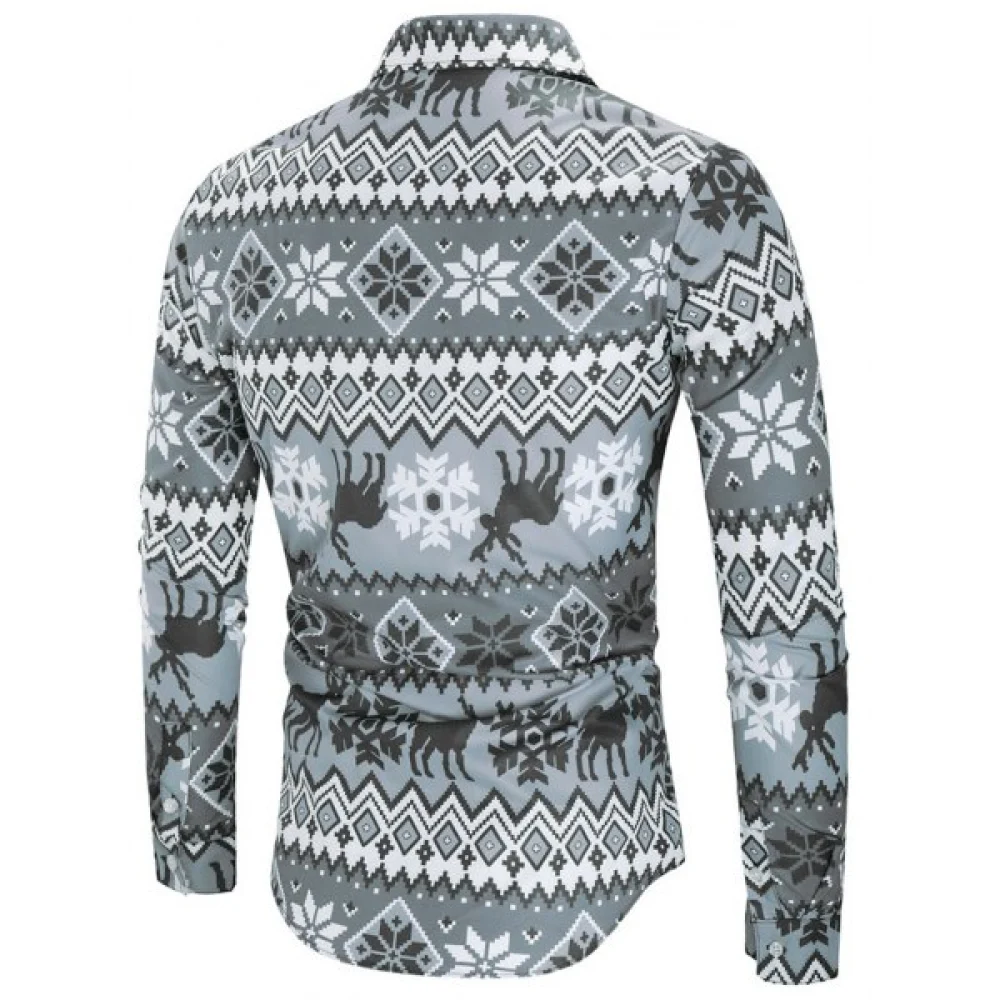 Christmas Deer Print Hidden Button Shirt - Fansmadedirect