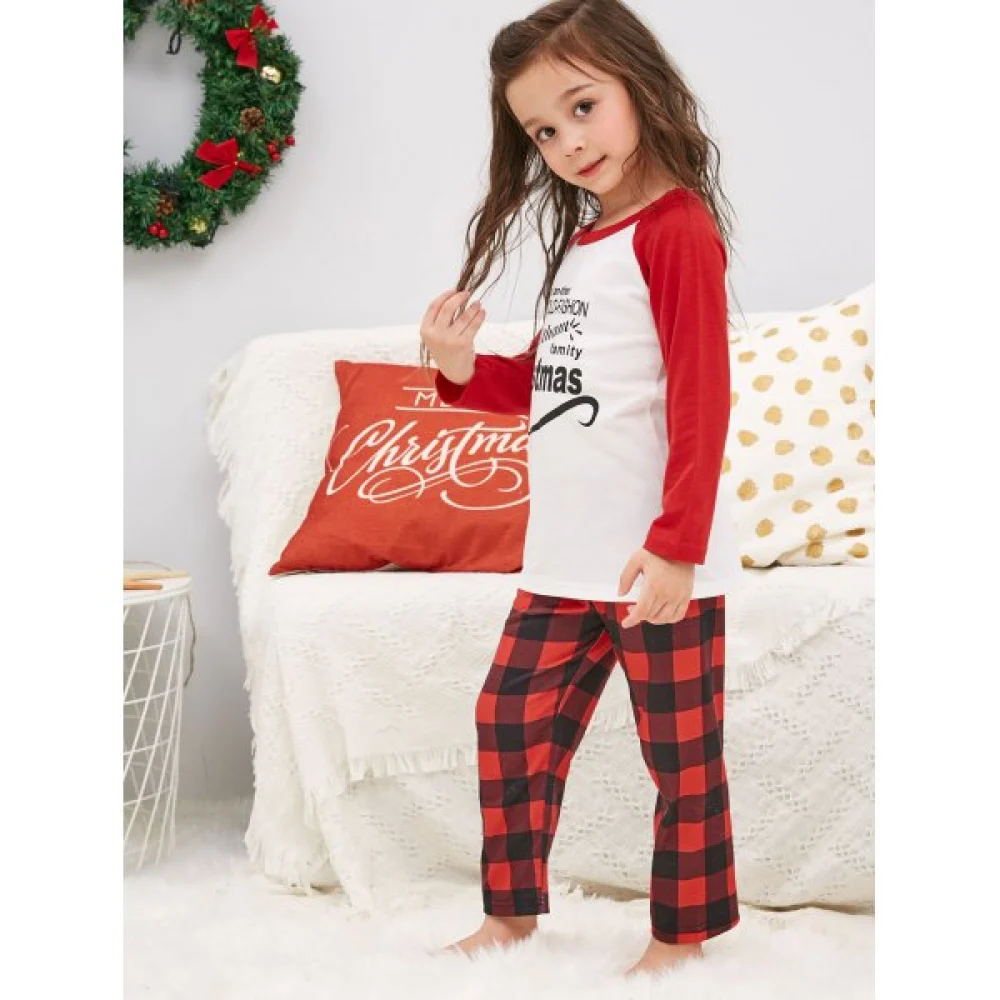 Christmas Letter Print Family Pajamas - Valentine Red Kid Fansmadedirect