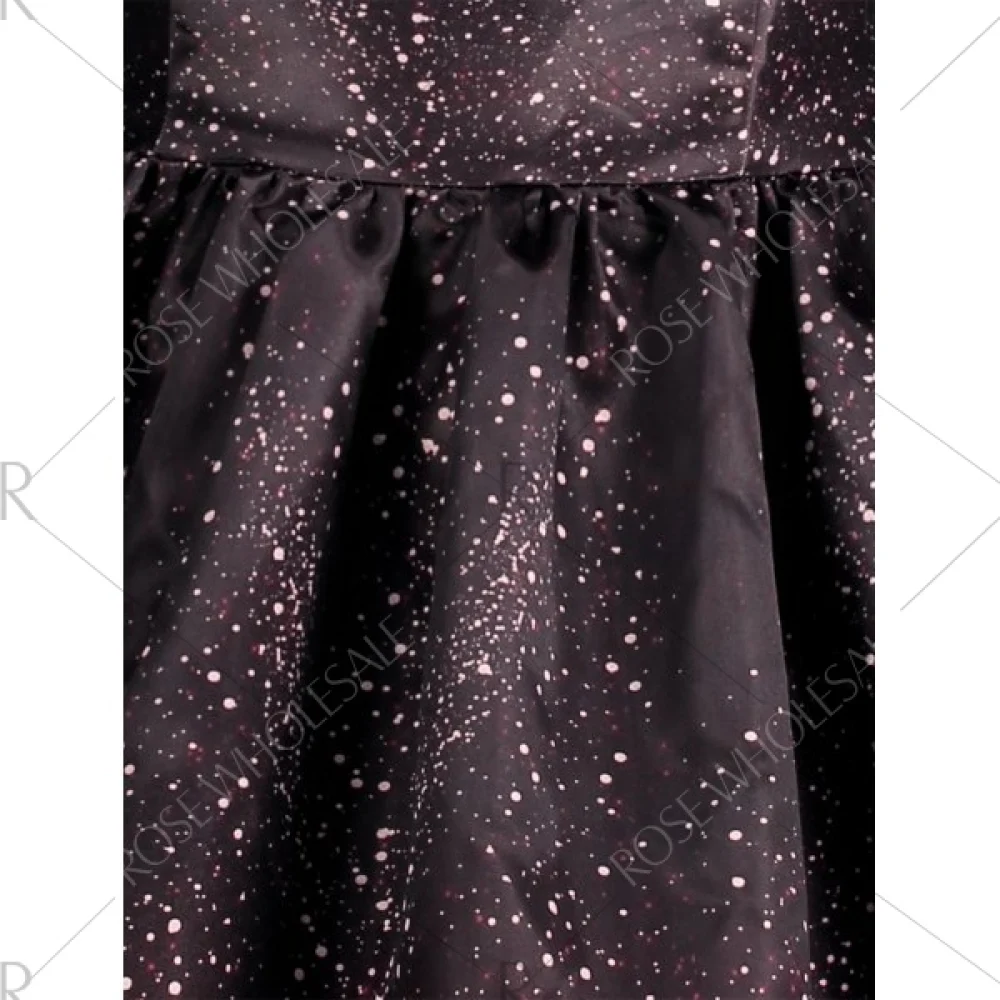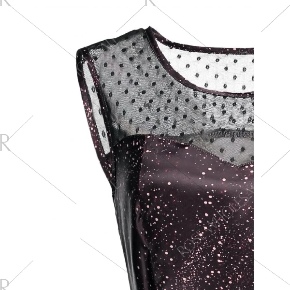 A chic dress for Christmas! Featuring with print design. polka dot mesh insert adds a little sexy look. fit and flare silhouette. and concealed zip closure at side.