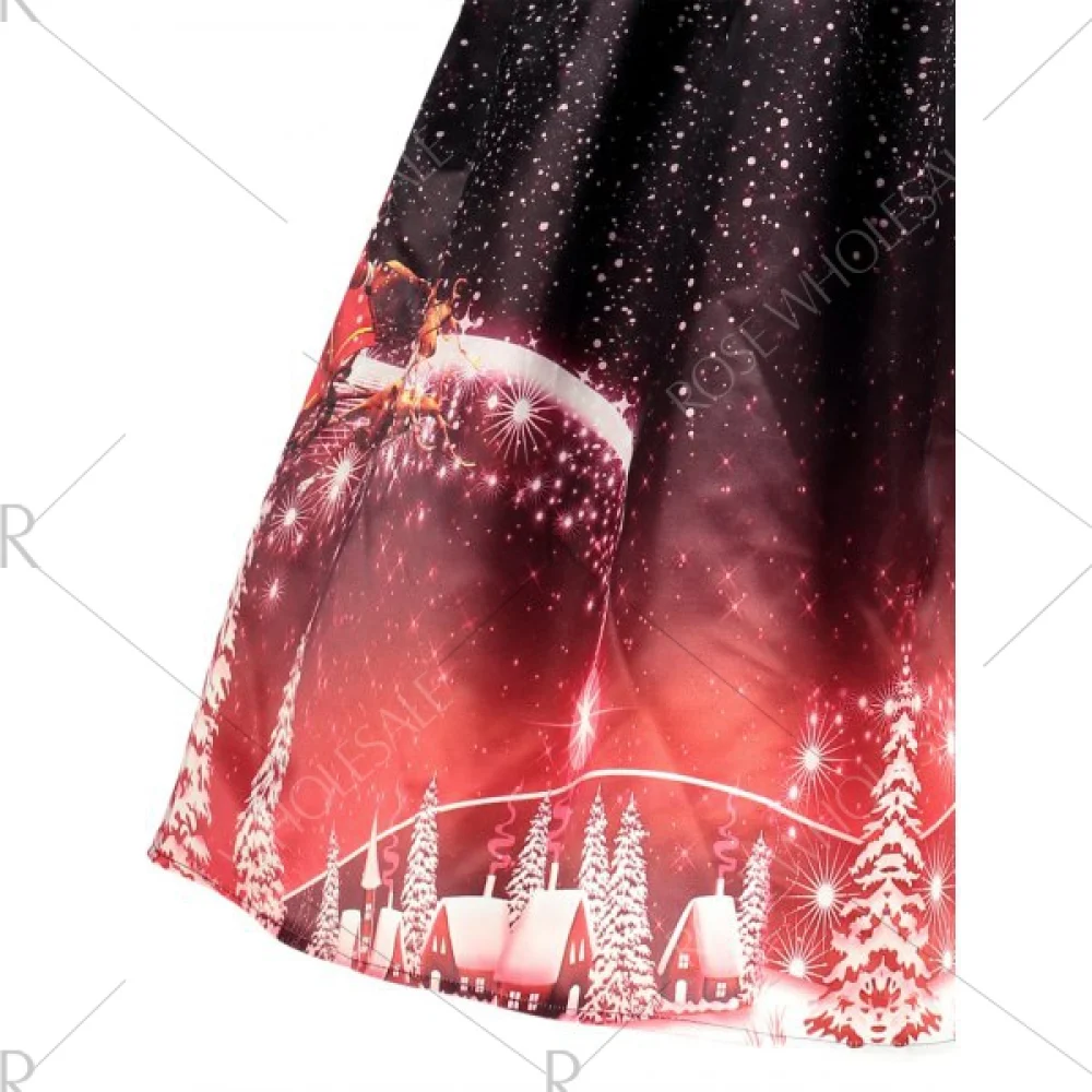 About Christmas Printed esh Panel Vintage Dress - Black Fansmadedirect