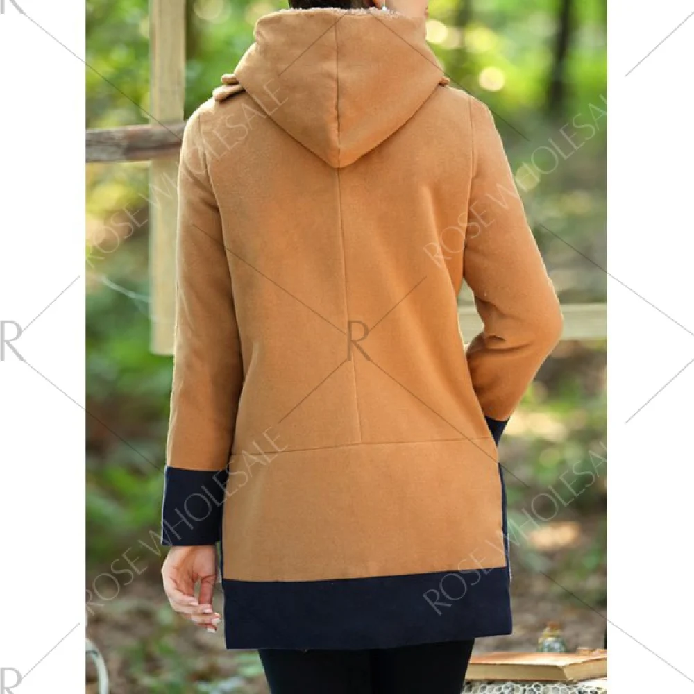 About Color Block Hooded ong Coat - Camel Fansmadedirect