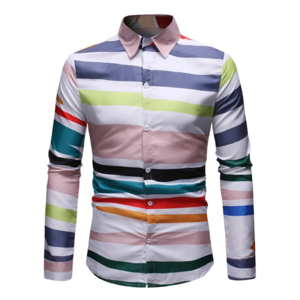 About Colorful Striped Print Long Sleeves Shirt - White Fansmadedirect
