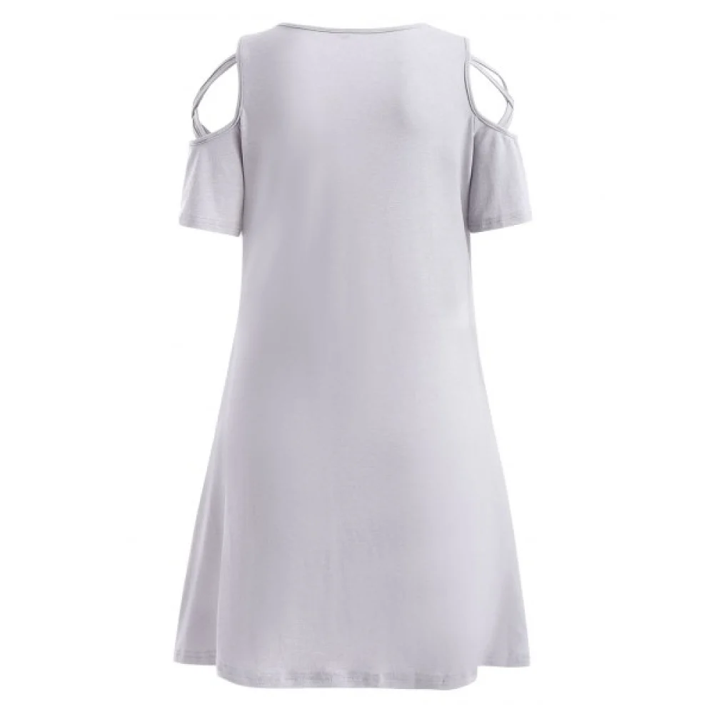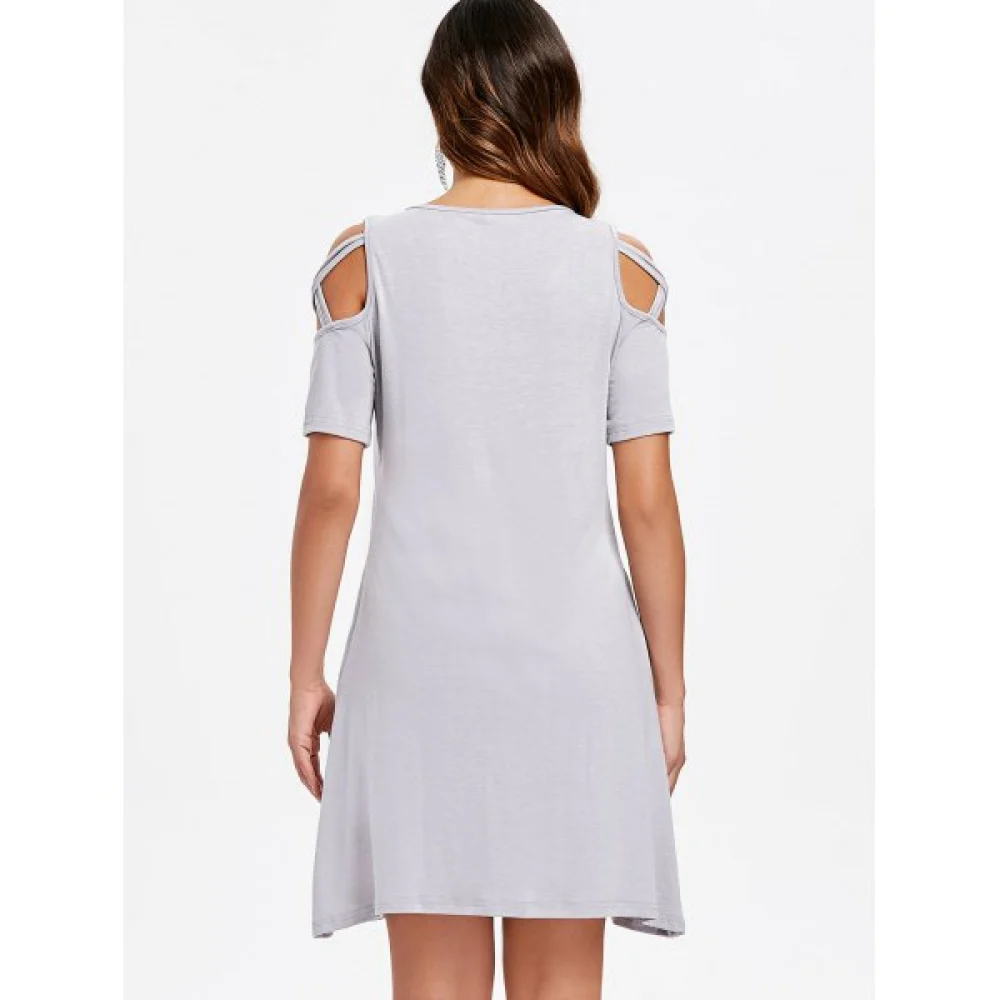 About Criss Cross leeve Round Neck hift Dress - Light Gray Fansmadedirect