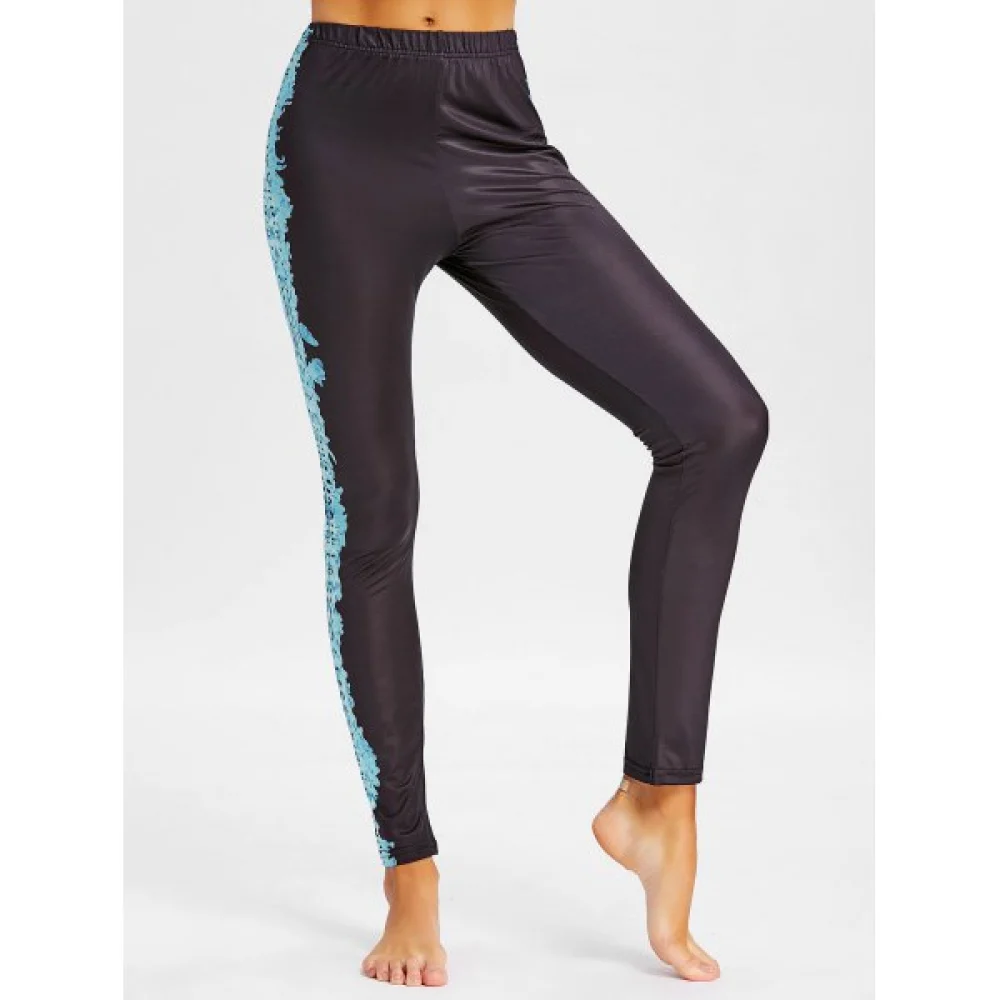 Casual workout pants feature mysterious totem print on both sides. trendy elastic high waist and skinny silhouette. Smooth and soft fabric can bring you a cozy experience outside.