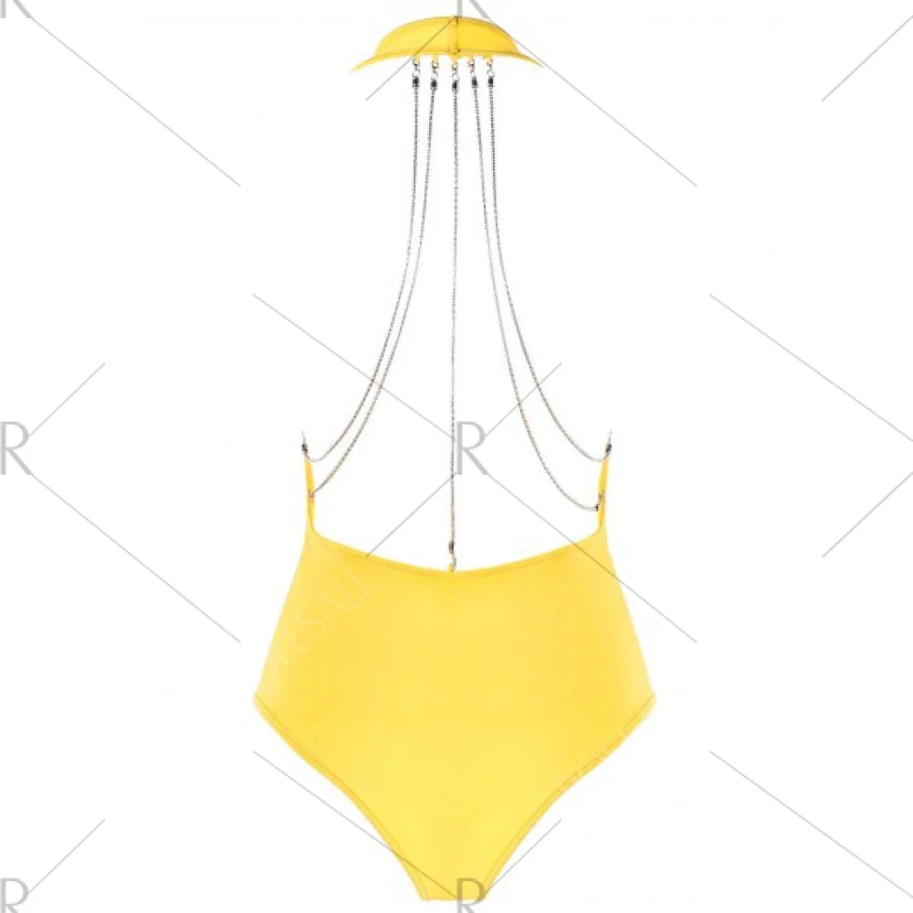 About etallic Chain Detail Lingerie Plunge Teddy - Yellow Fansmadedirect