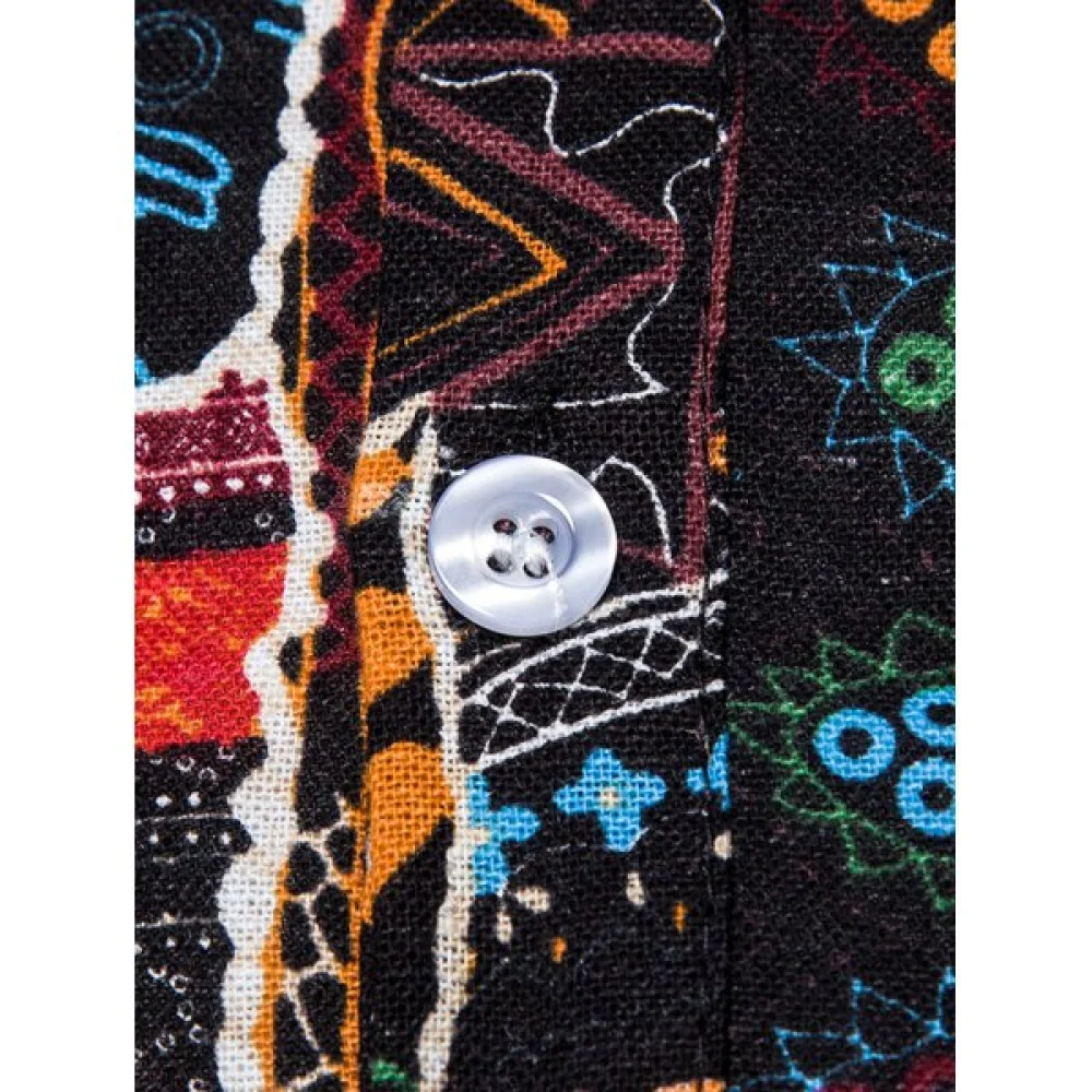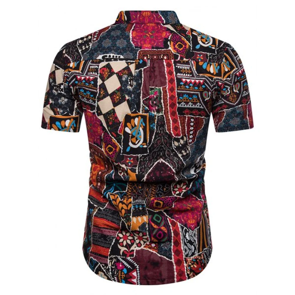 About Ethnic Flower Print Stand Collar Half Button Shirt - Rose Red Fansmadedirect