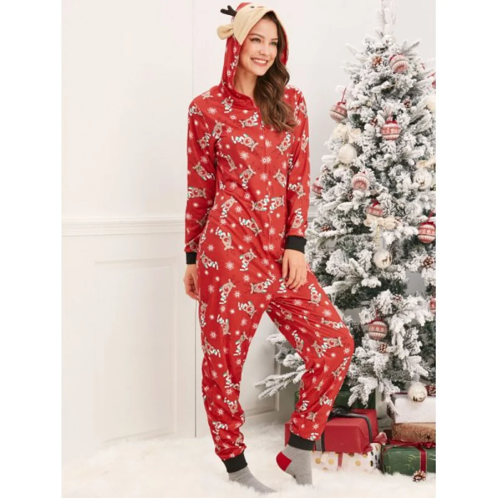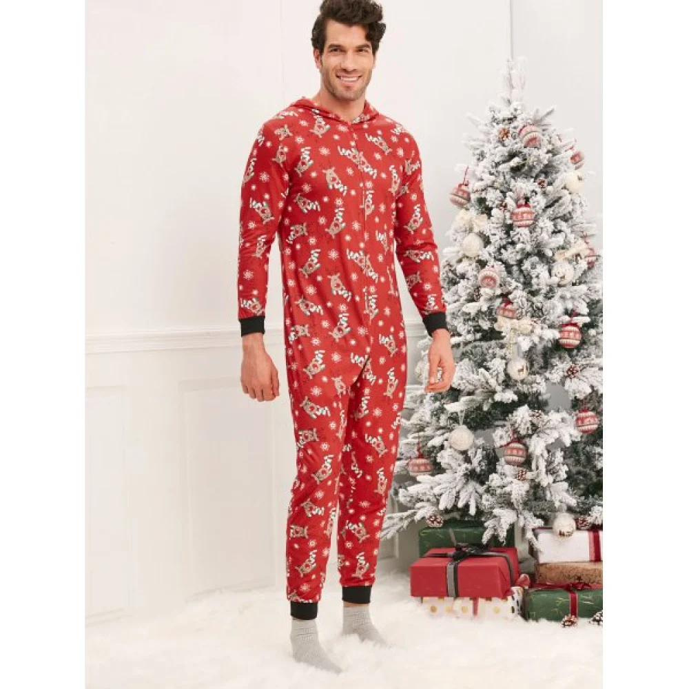 About Family Christmas Elk Hooded Jumpsuit Pajama - Red Dad Fansmadedirect