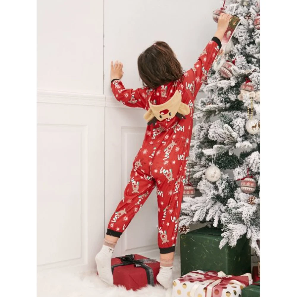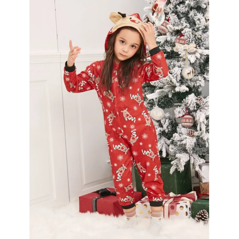 Family Christmas Elk Hooded Jumpsuit Pajama - Red Dad Fansmadedirect