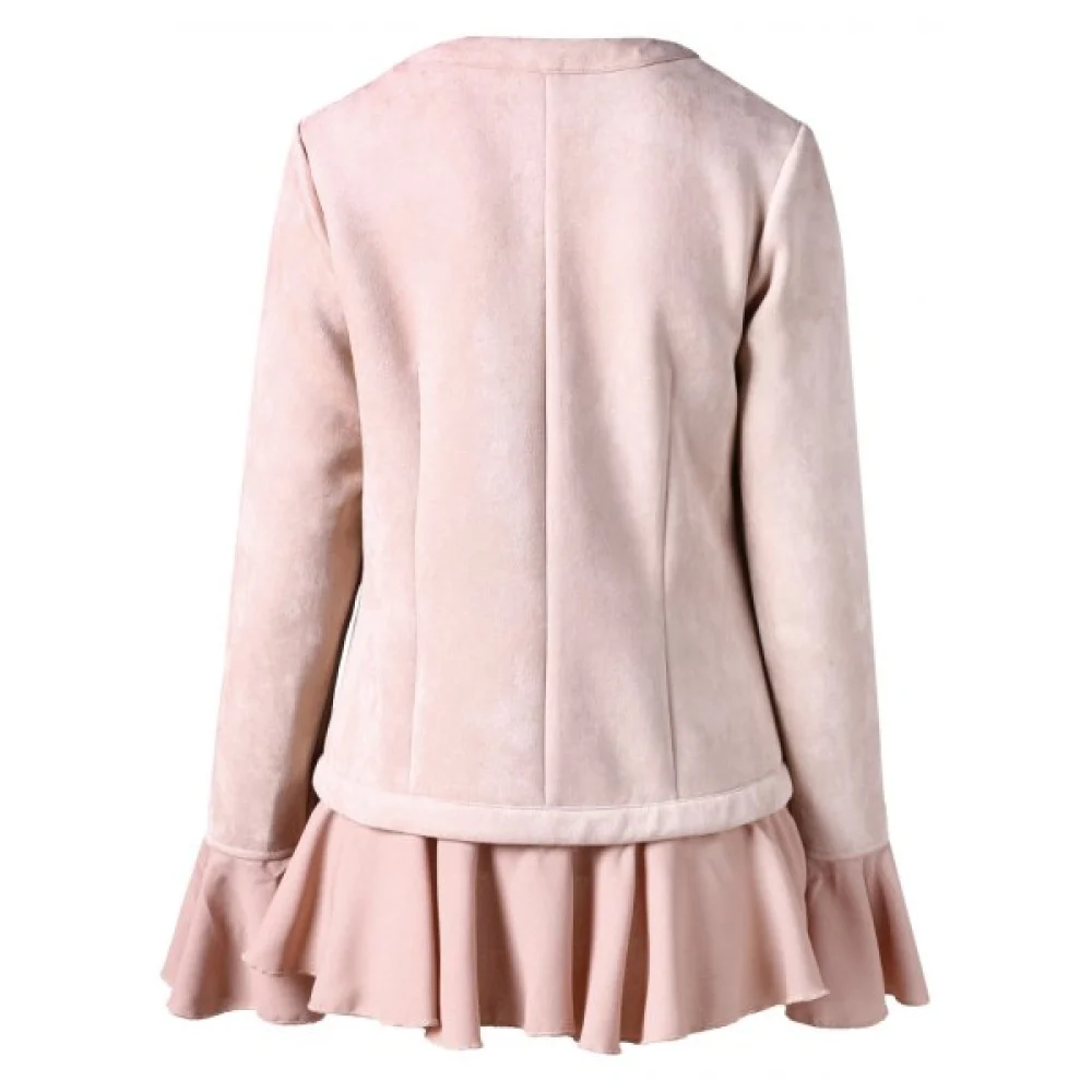 About Faux Suede Ruffles Jacket - Light Pink Fansmadedirect