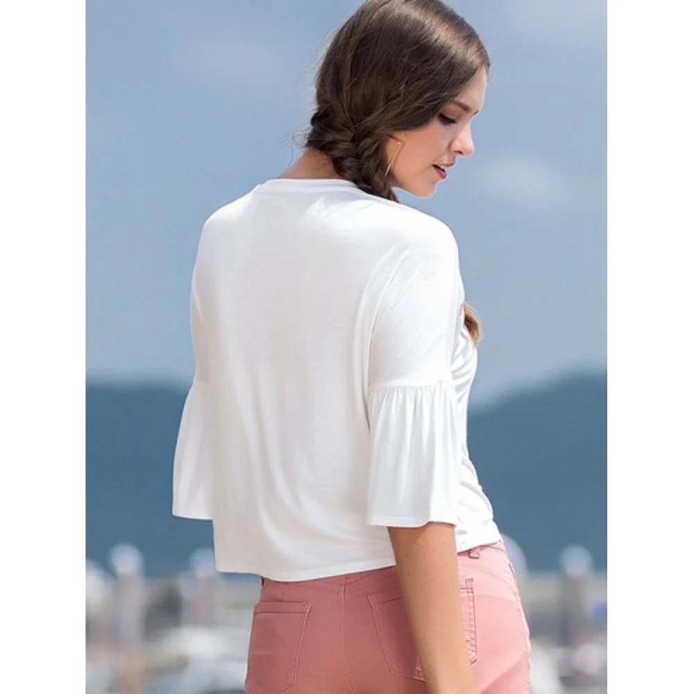 About Floral Embroidery Horn Sleeve Top - ilk White Fansmadedirect