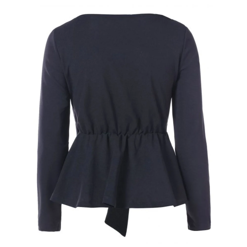About Floral Embroidery Long Sleeve Peplum T-shirt - Black Fansmadedirect