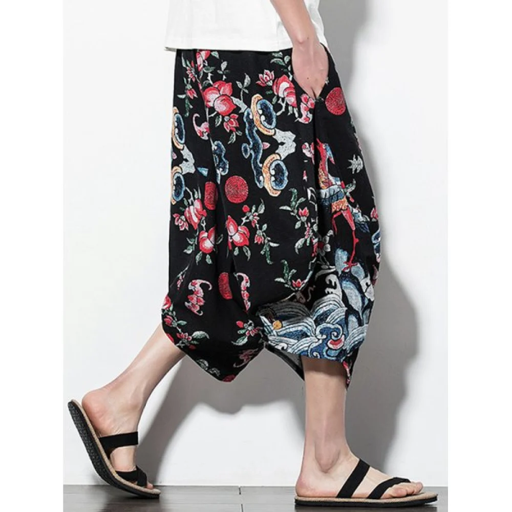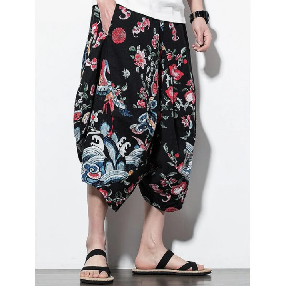 About Floral Print Casual Harem Pants - Black Fansmadedirect