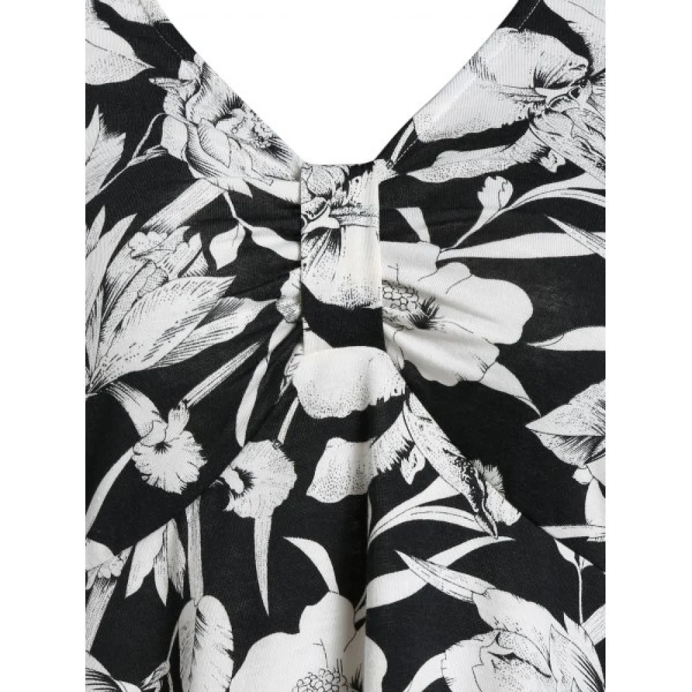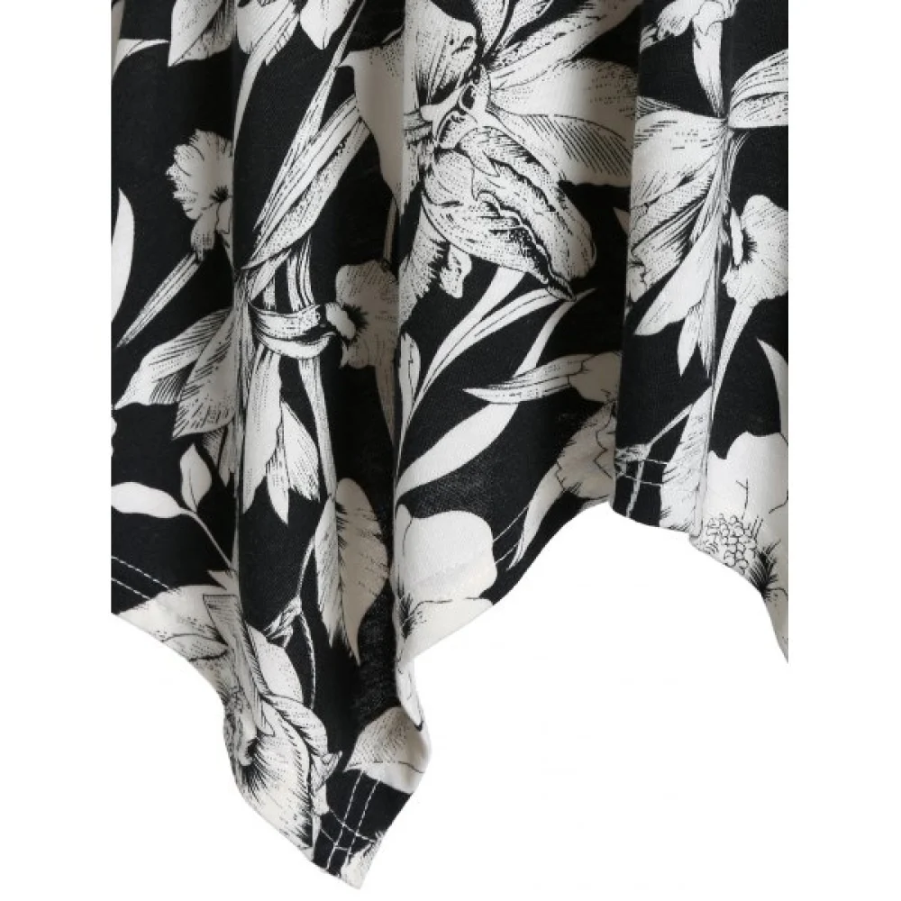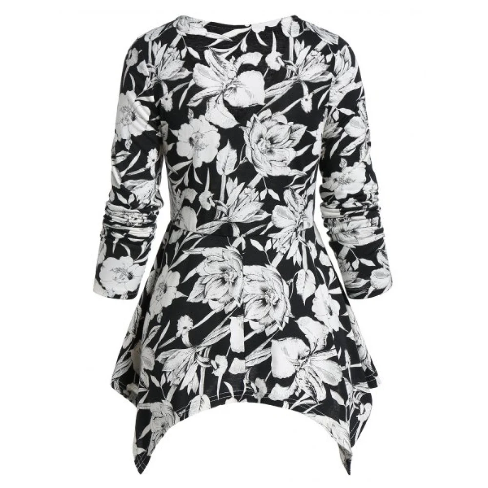 About Floral Print Long Sleeve Ruched Handkerchief T-shirt - Black Fansmadedirect