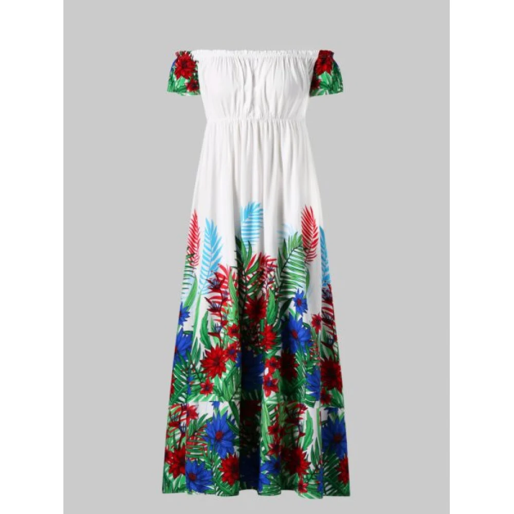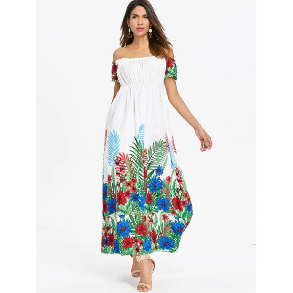 About Floral Print Off Shoulder Dress - White Fansmadedirect