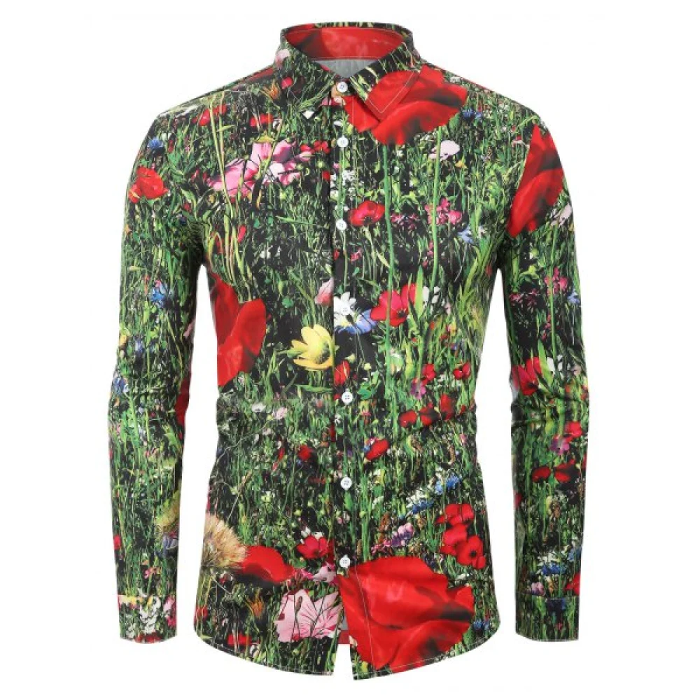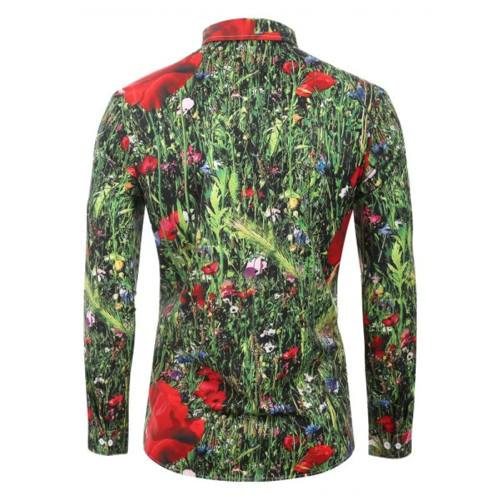 About Flowering Shrubs Printed Long Sleeves Shirt - Jungle Green Fansmadedirect