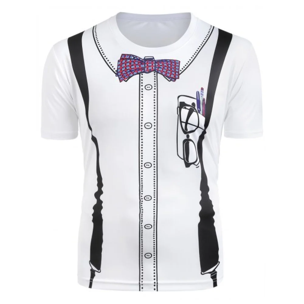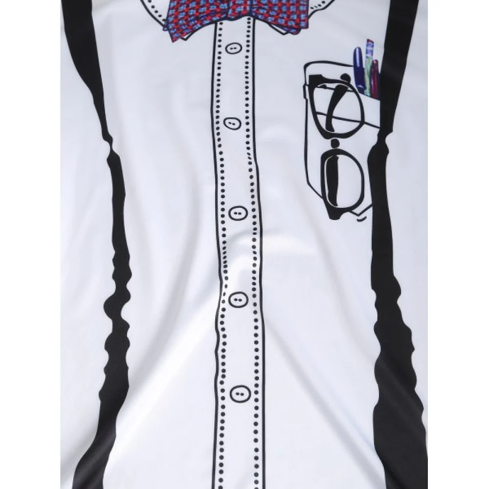 About Fuax Collar Bowknot Strap Print Short Sleeves T-shirt - White Fansmadedirect