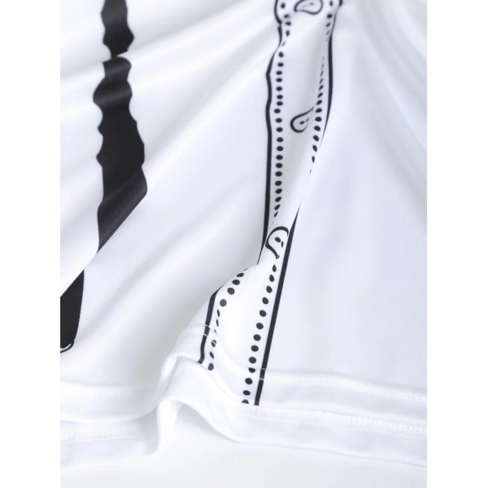 Fuax Collar Bowknot Strap Print Short Sleeves T-shirt - White Fansmadedirect