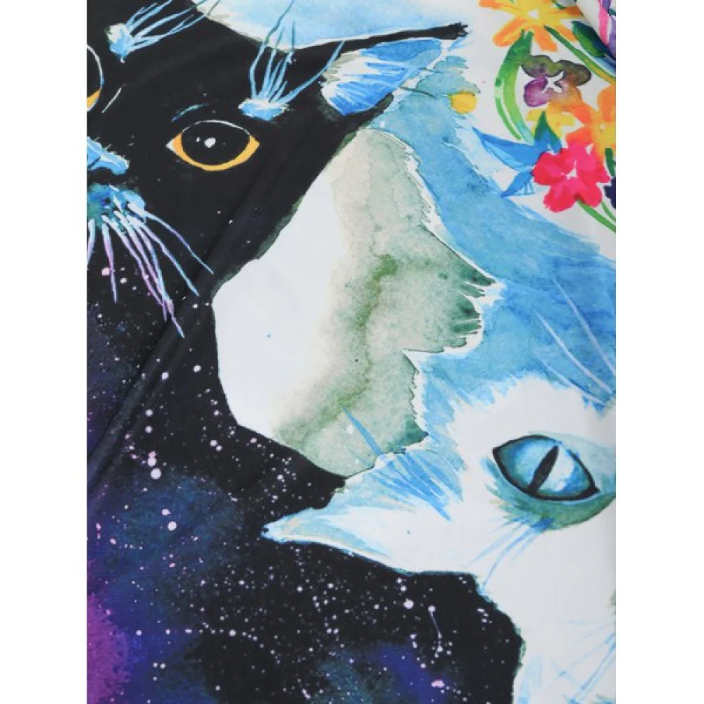 Galaxy Cat and Flowers Print hort leeves T-shirt - Fansmadedirect