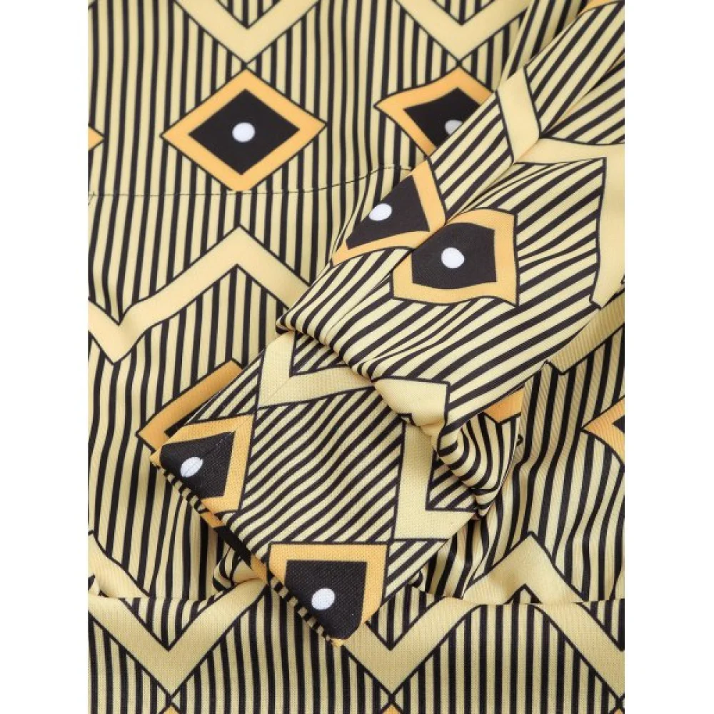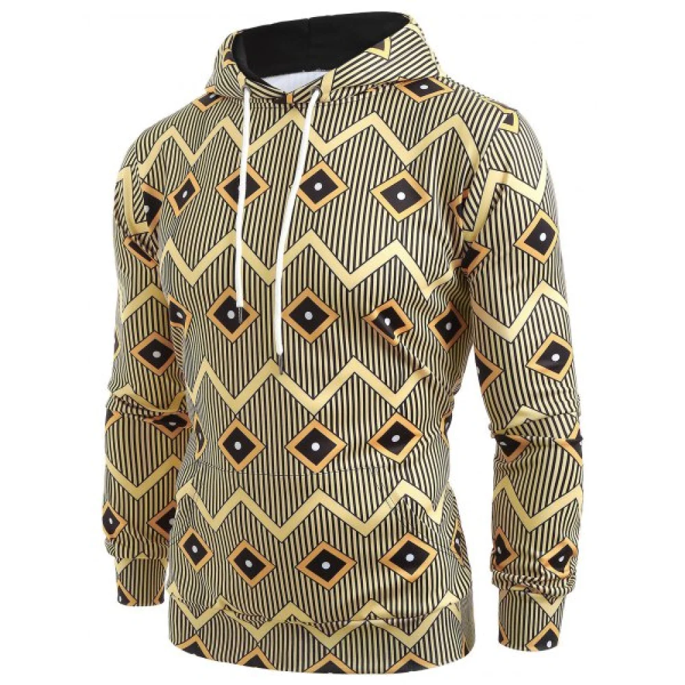 About Geometric Stripe Printed Pouch Pocket Hoodie - Goldenrod Fansmadedirect