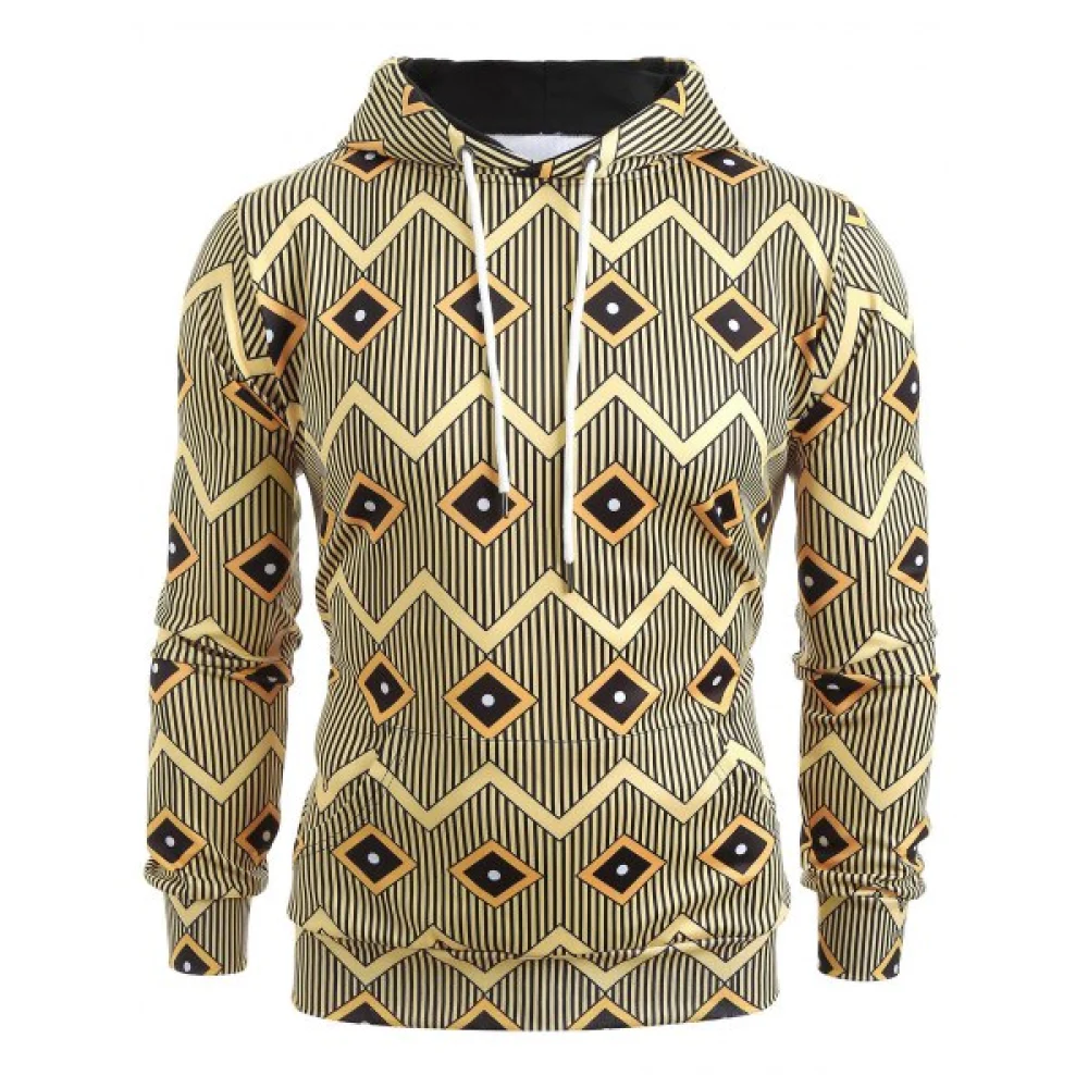 Geometric Stripe Printed Pouch Pocket Hoodie - Goldenrod Fansmadedirect