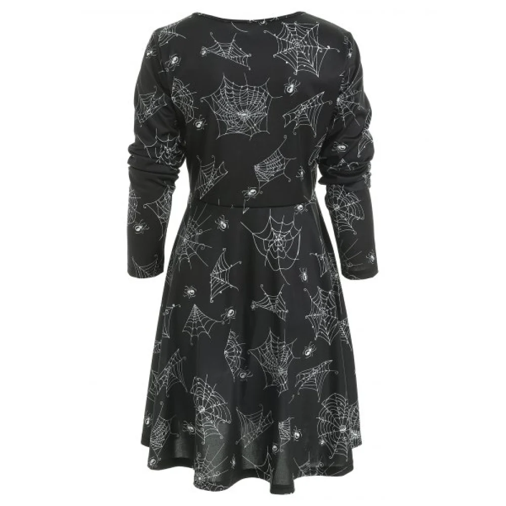 About Halloween pider Web Print Dress - Black Fansmadedirect