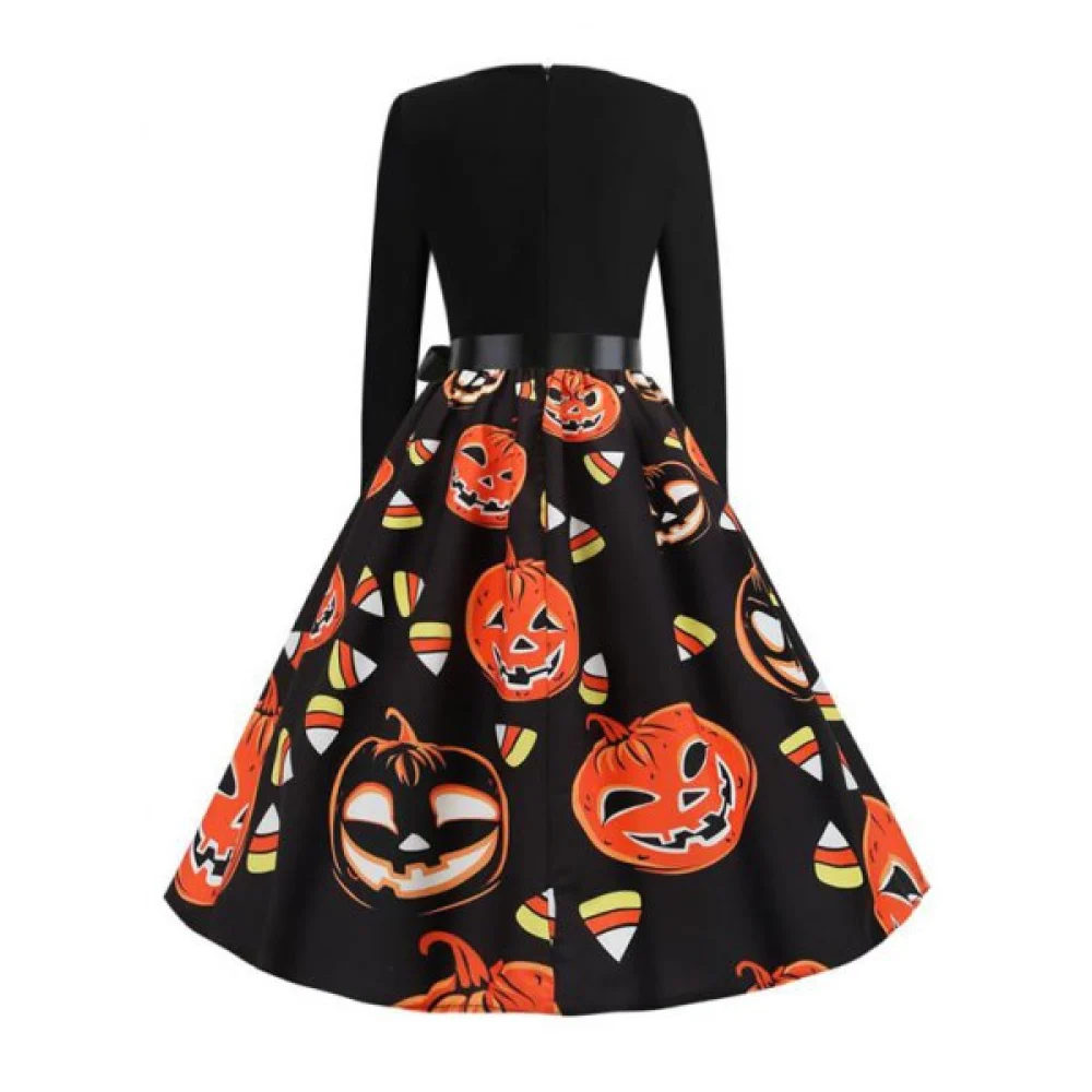 About Halloween Pumpkin Belted Prom Dress - Black Fansmadedirect