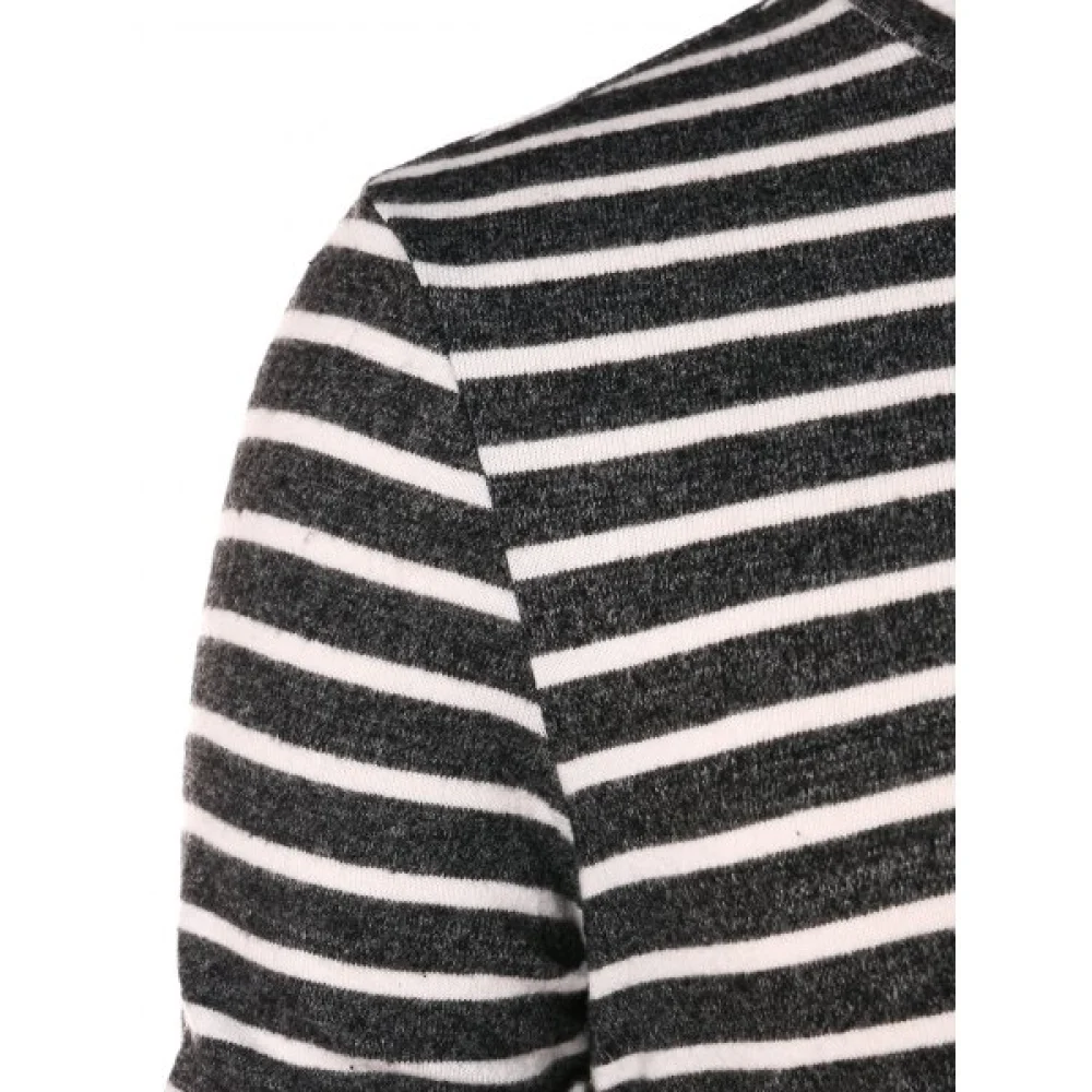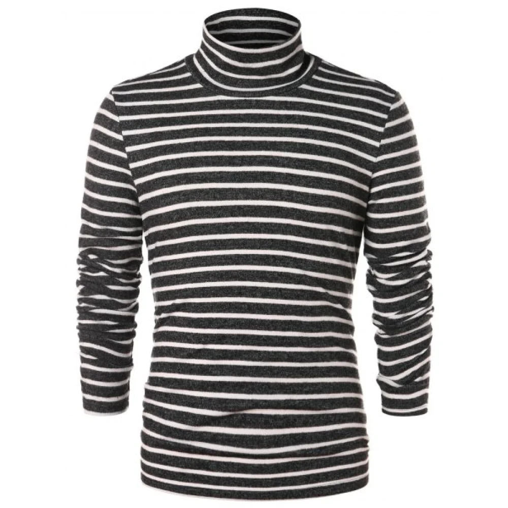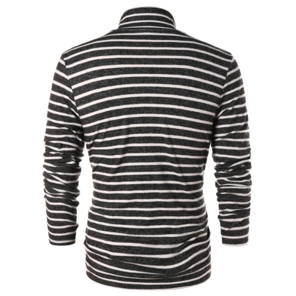 About High Collar Striped Long Sleeve T-shirt - Fansmadedirect