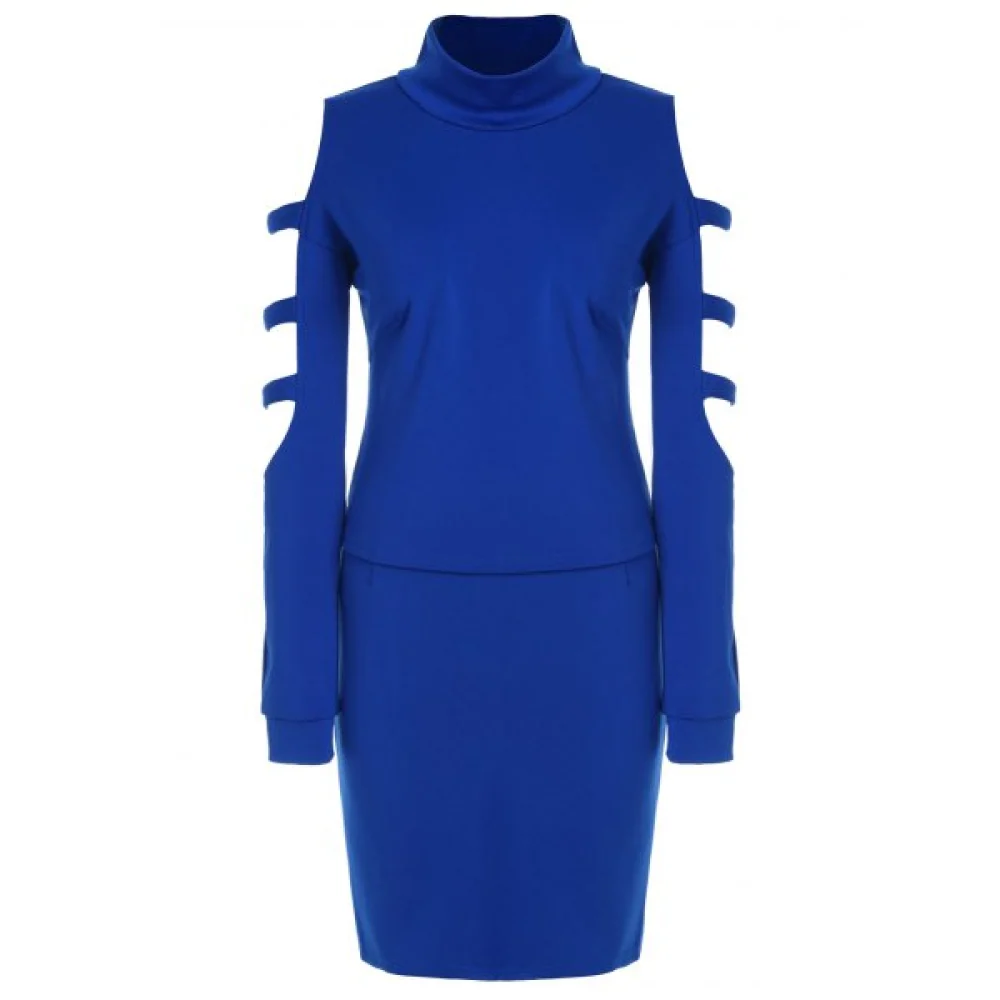 About High Neck Ladder Cut Out Sleeve Top and ini Skirt - Blue Fansmadedirect