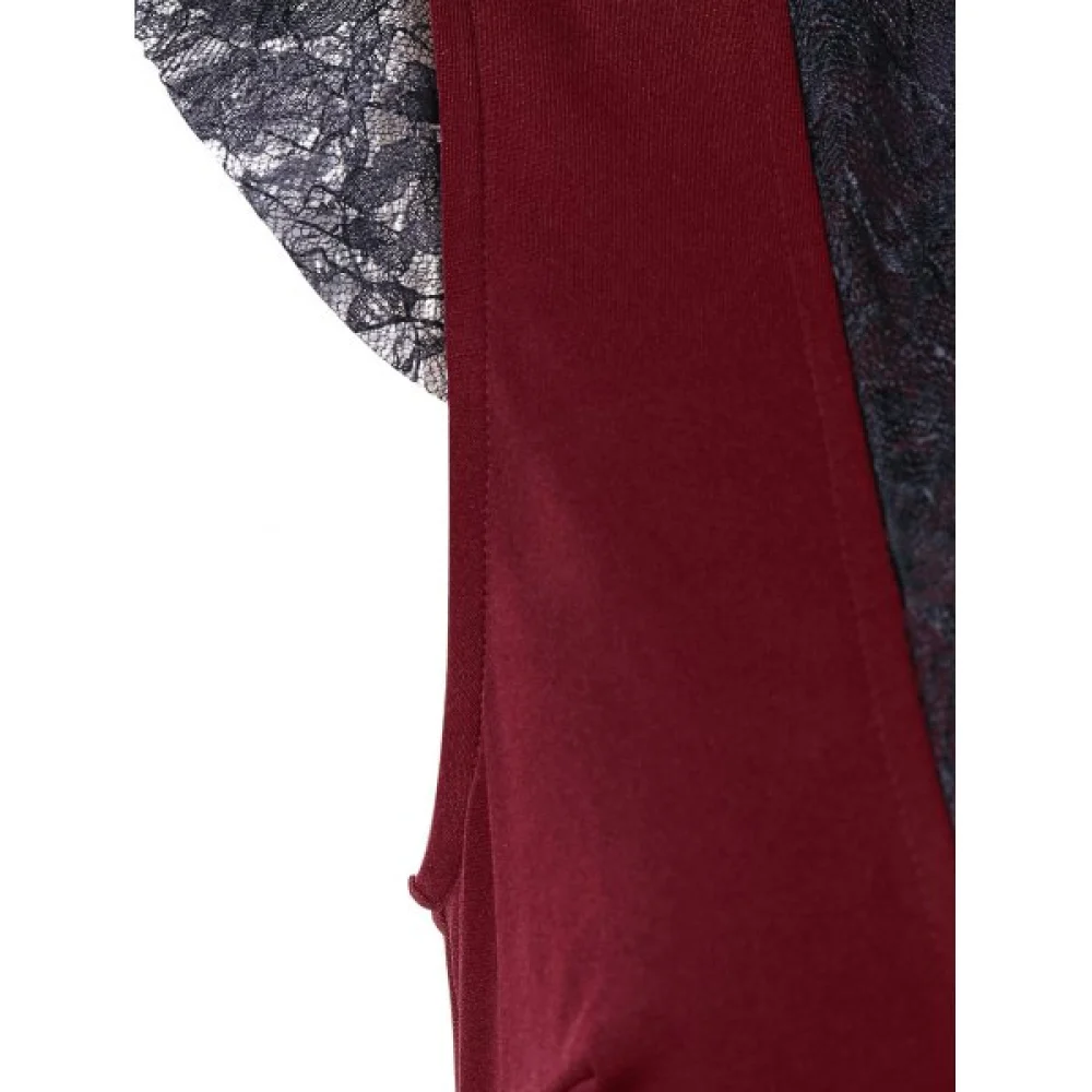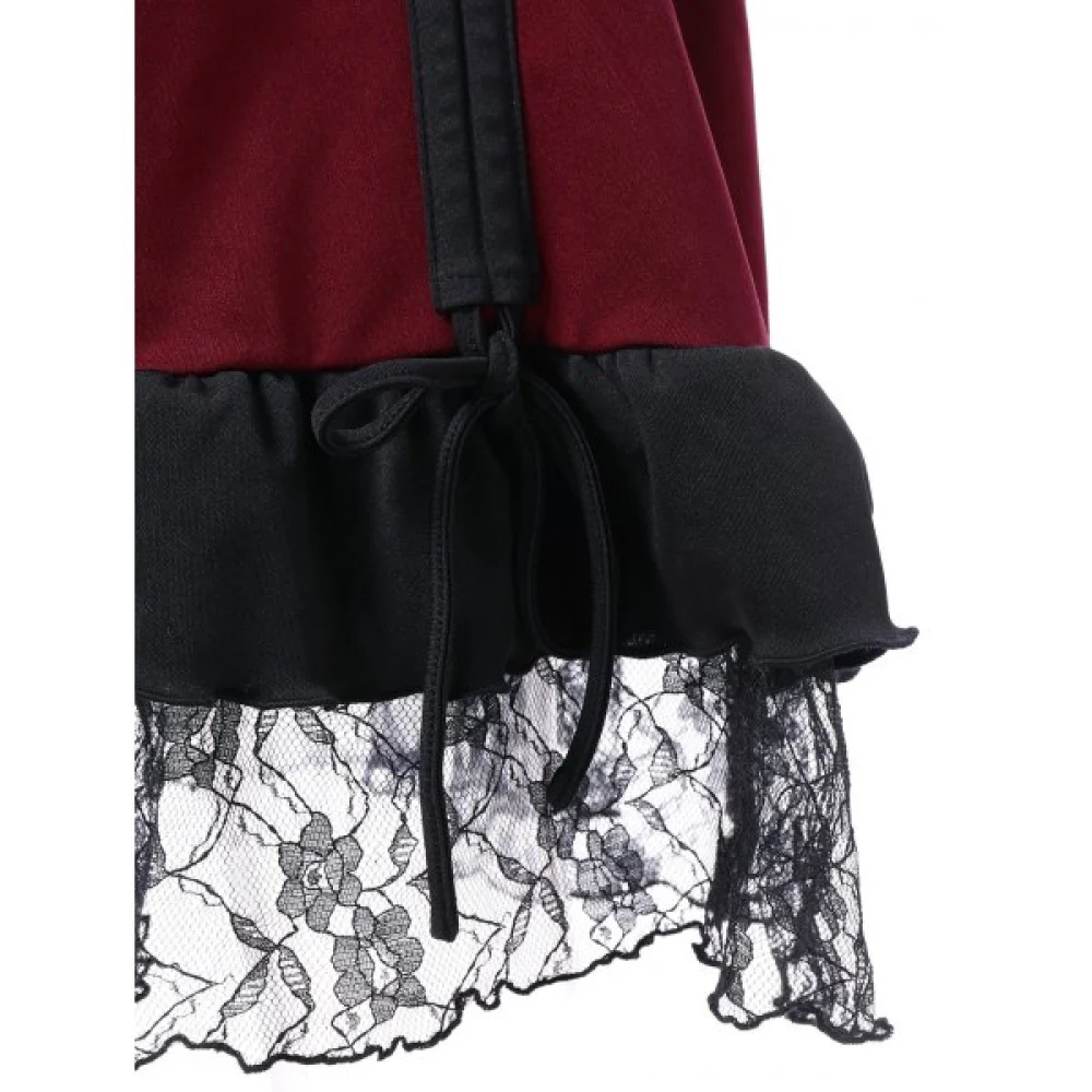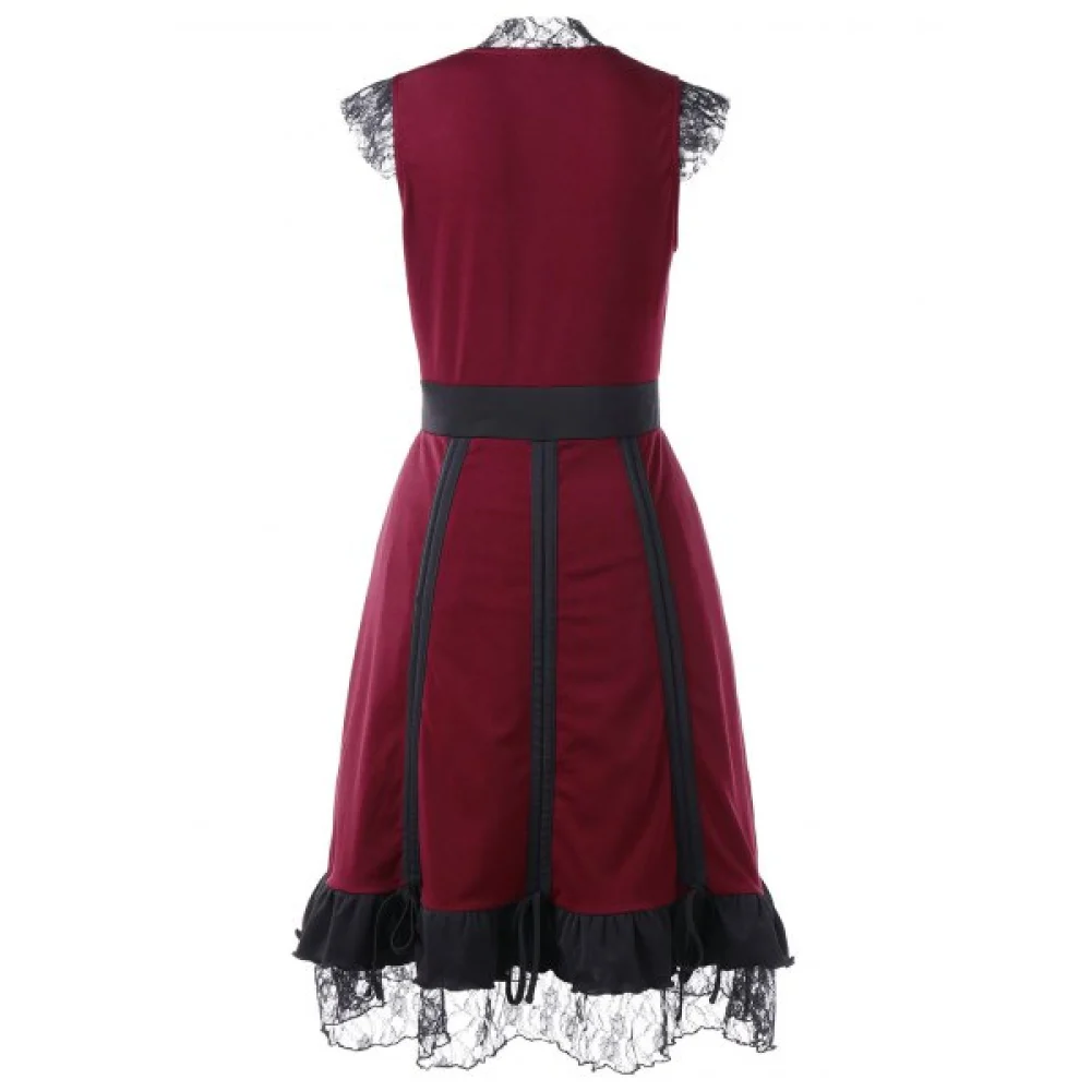 About High Waist Lace Panel Low Cut Dress - Red Wine Fansmadedirect