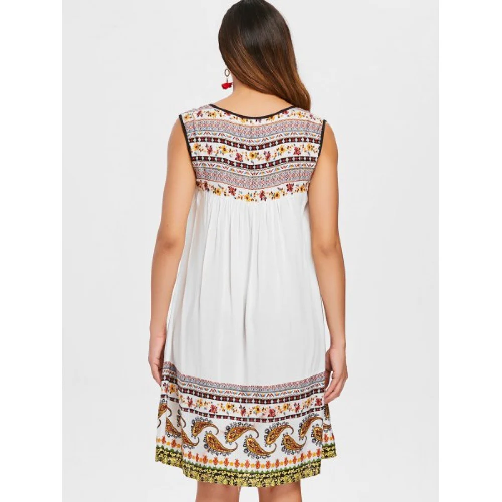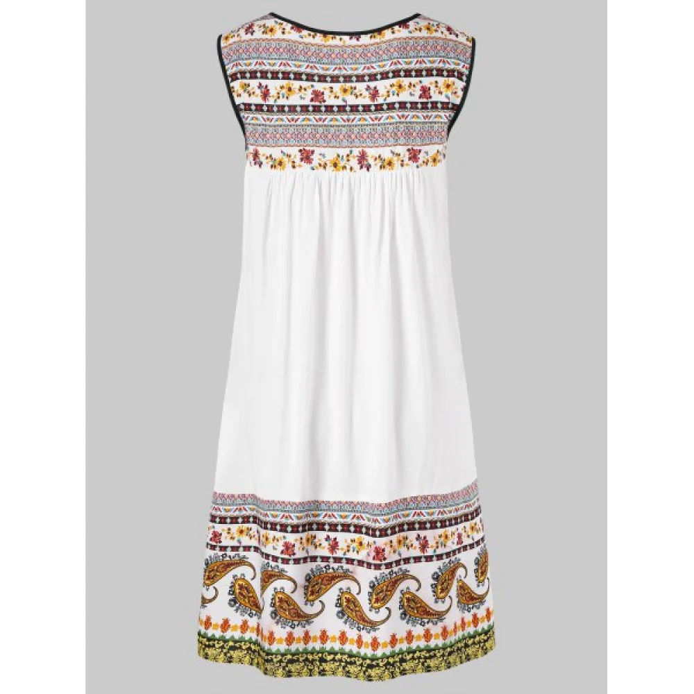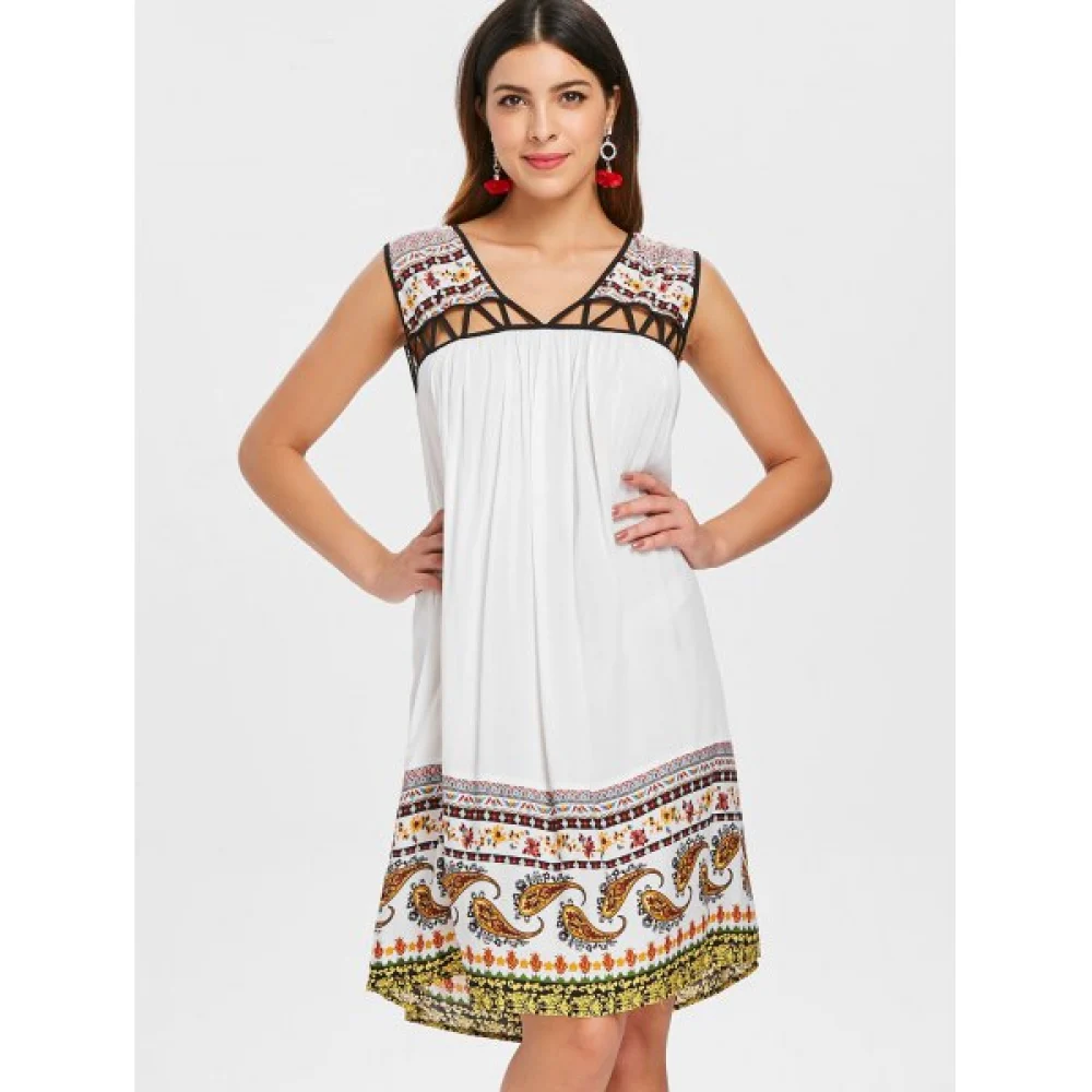 About Hollow Out Paisley Print Shift Dress - White Fansmadedirect