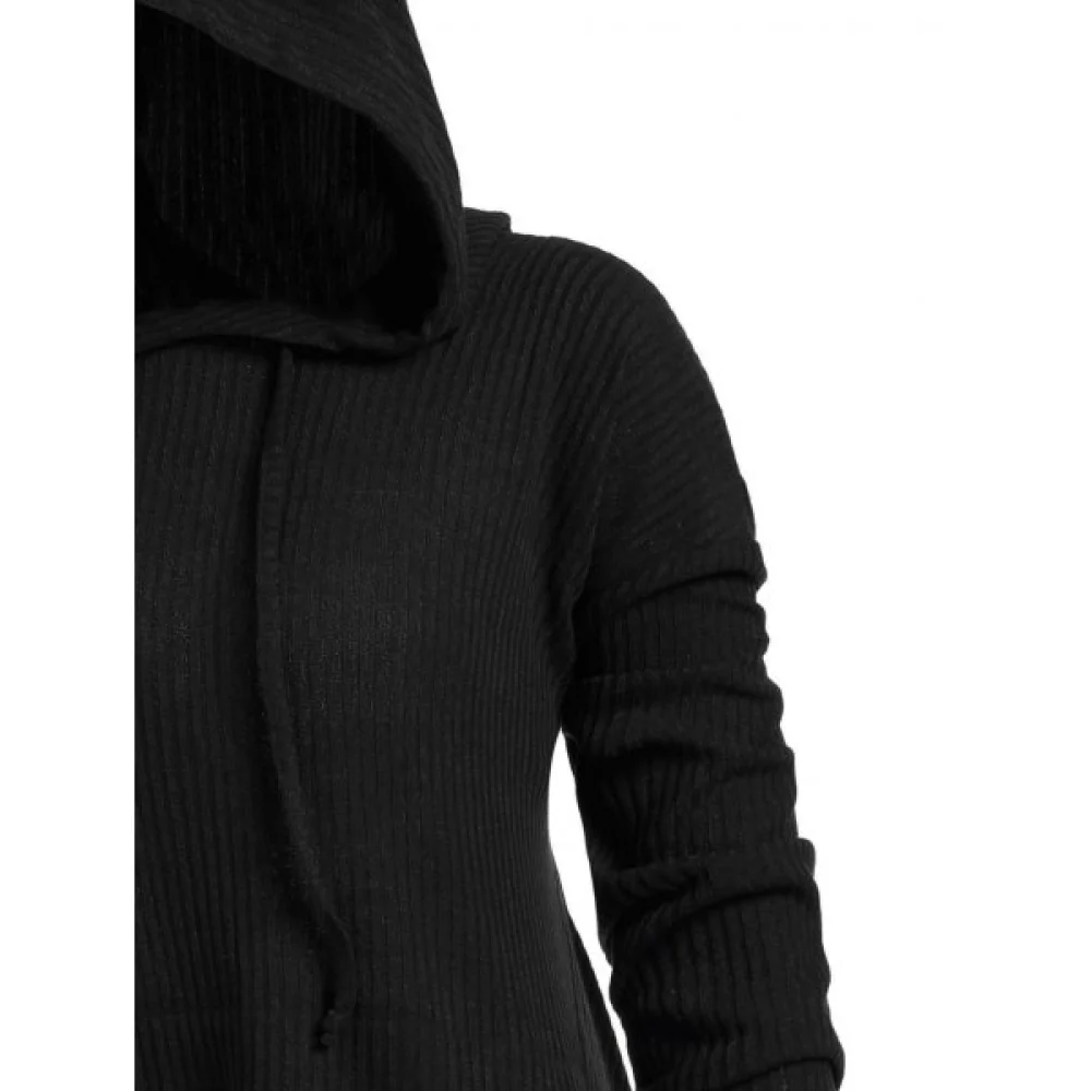 About Hooded Drop houlder Drawstring Dip Hem weater - Black Fansmadedirect