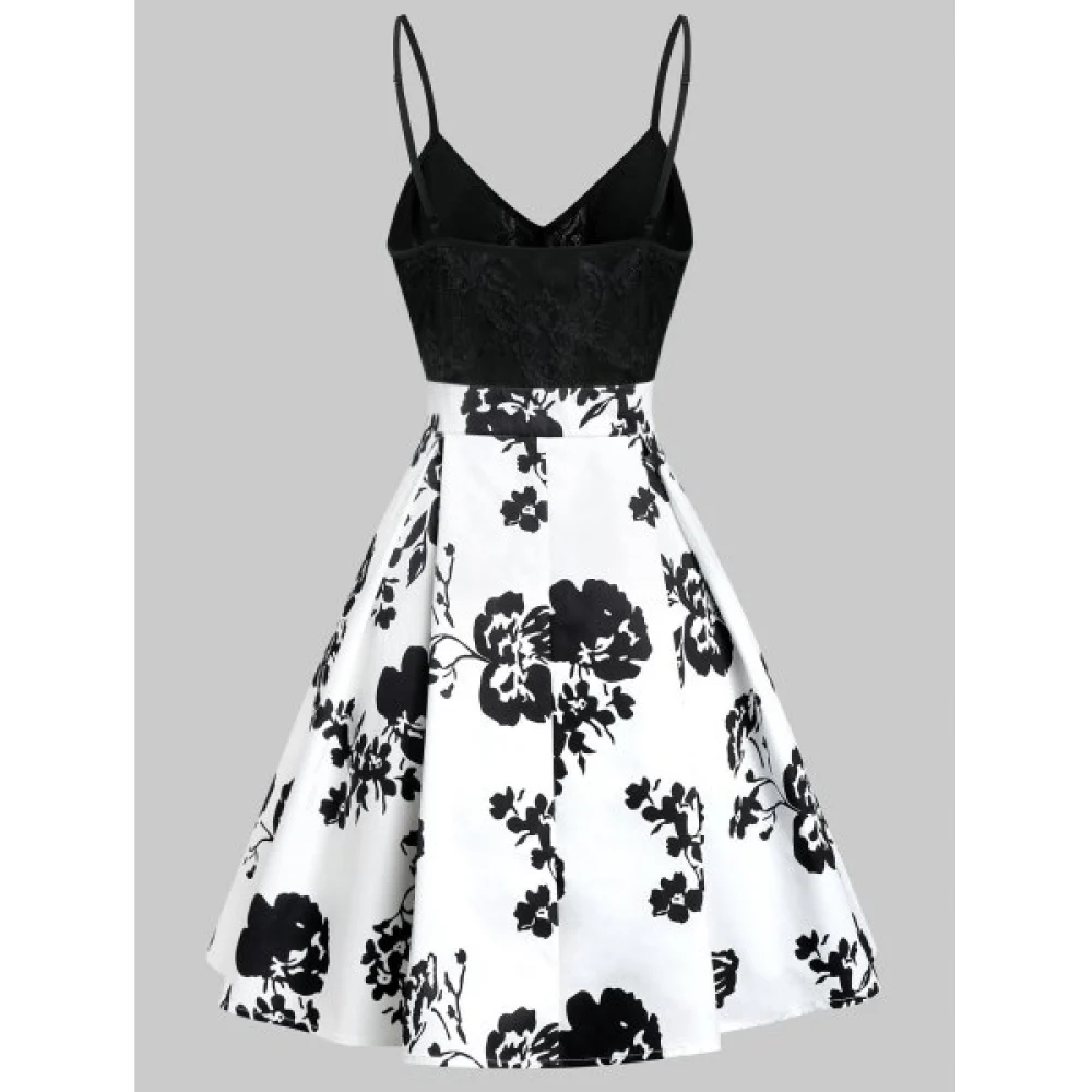 About Lace Panel Flower Print ini Cami Dress - White Fansmadedirect