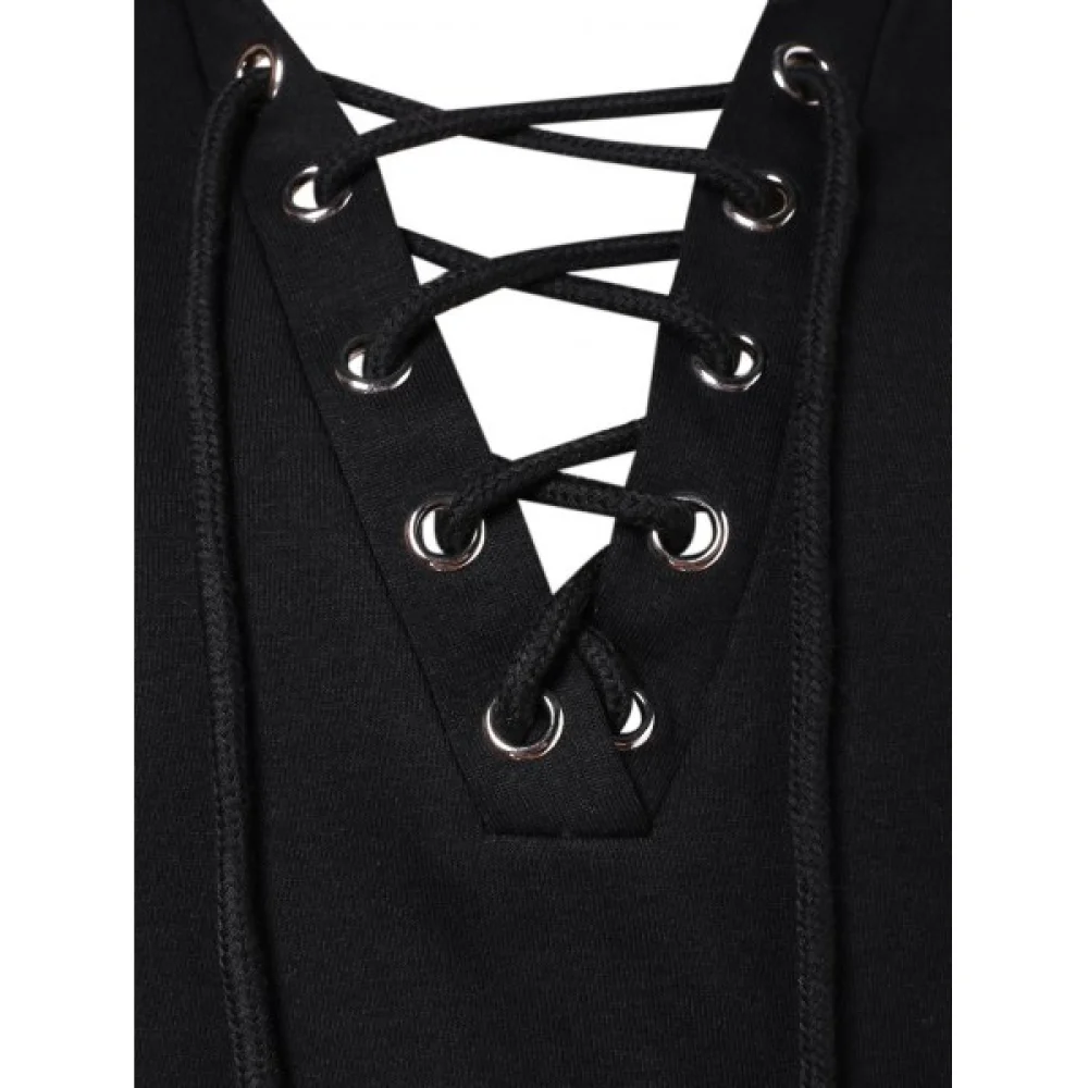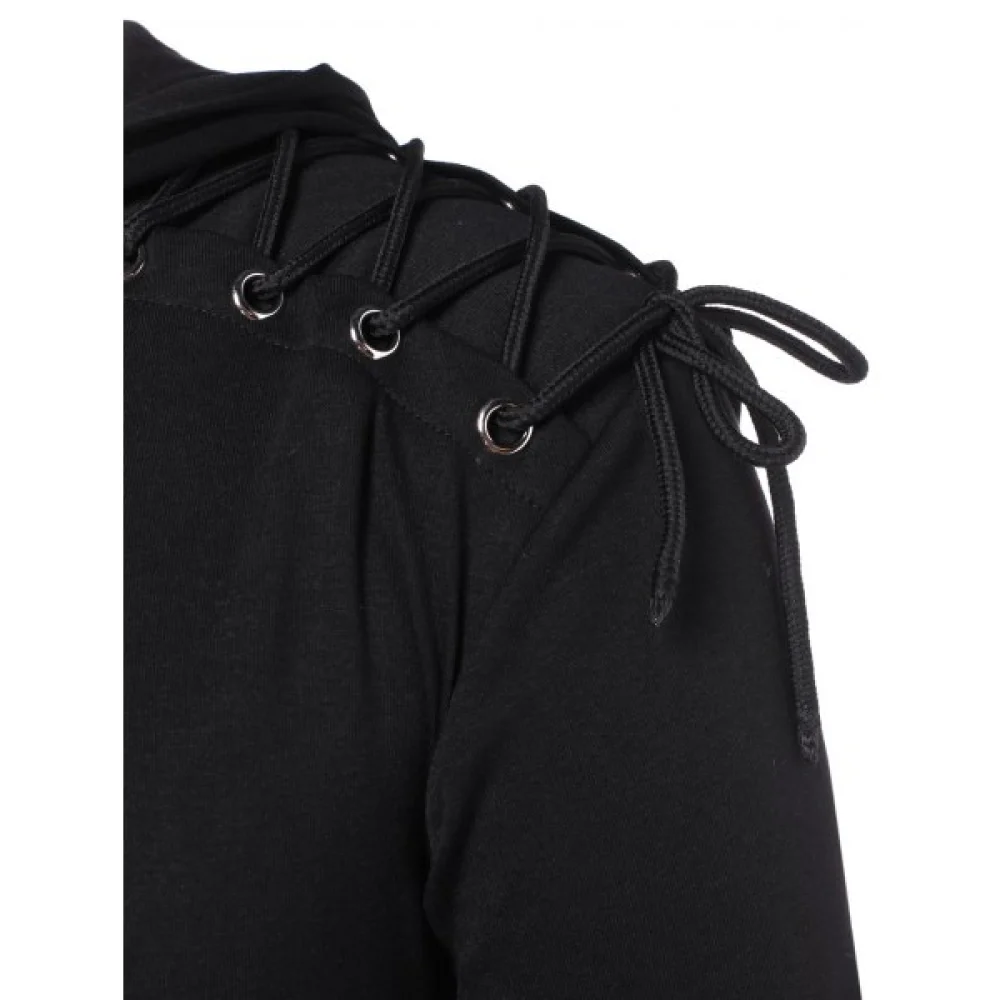 About Lace Up Kangaroo Pocket Hoodie - Black Fansmadedirect