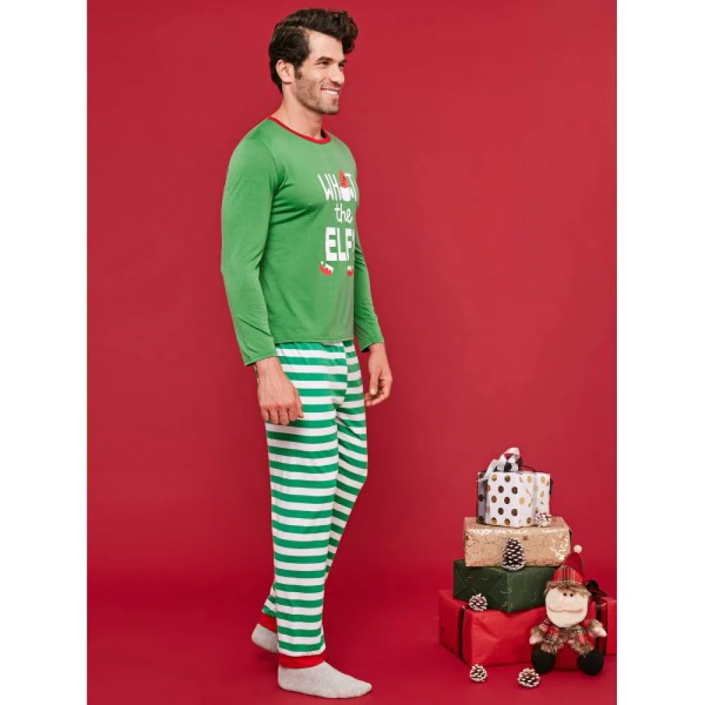 About Letter Print Christmas Parent Child Loungewear Set - Deep Green Kid Fansmadedirect