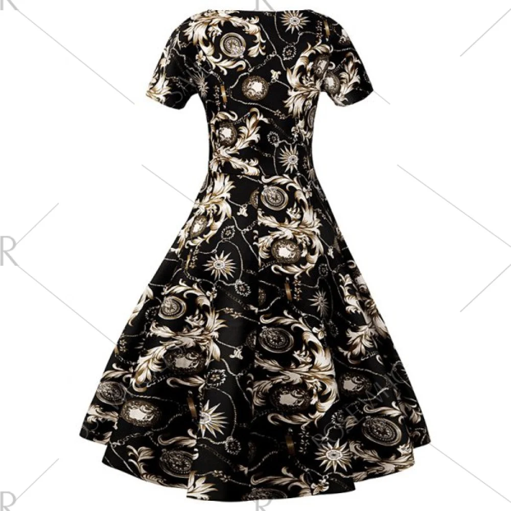 About lim Fit Ornate Print wing Dress - Black Fansmadedirect